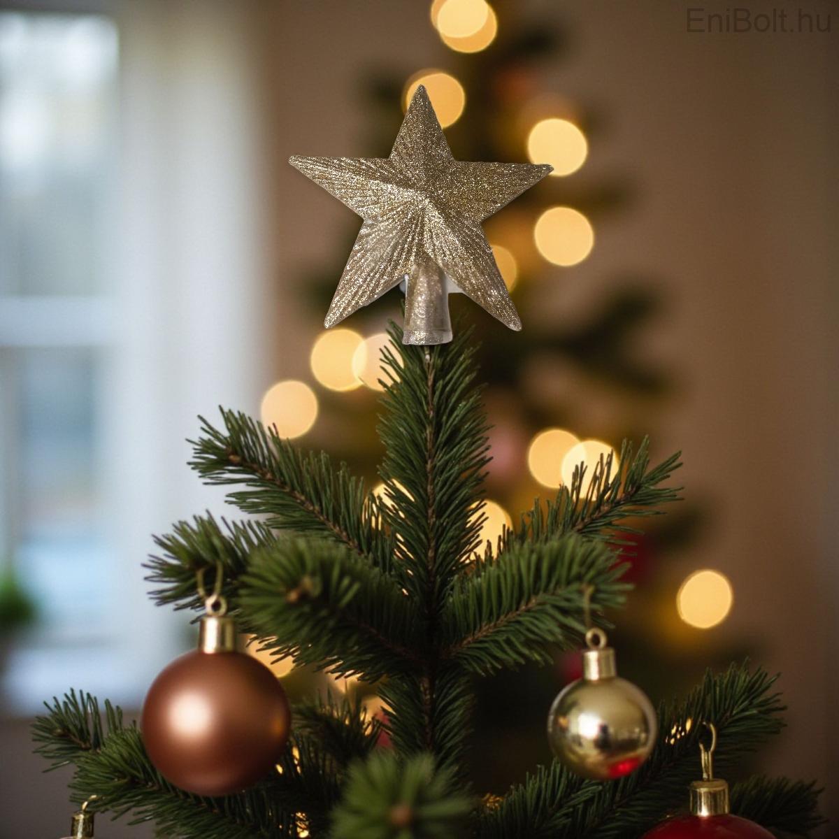A könnyű, mégis tartós műanyag anyag biztosítja, hogy stabilan illeszkedjen a fa tetejére. Klasszikus, mégis modern színeinek köszönhetően tökéletesen kombinálható arany, ezüst vagy pasztell árnyalatú díszekkel.