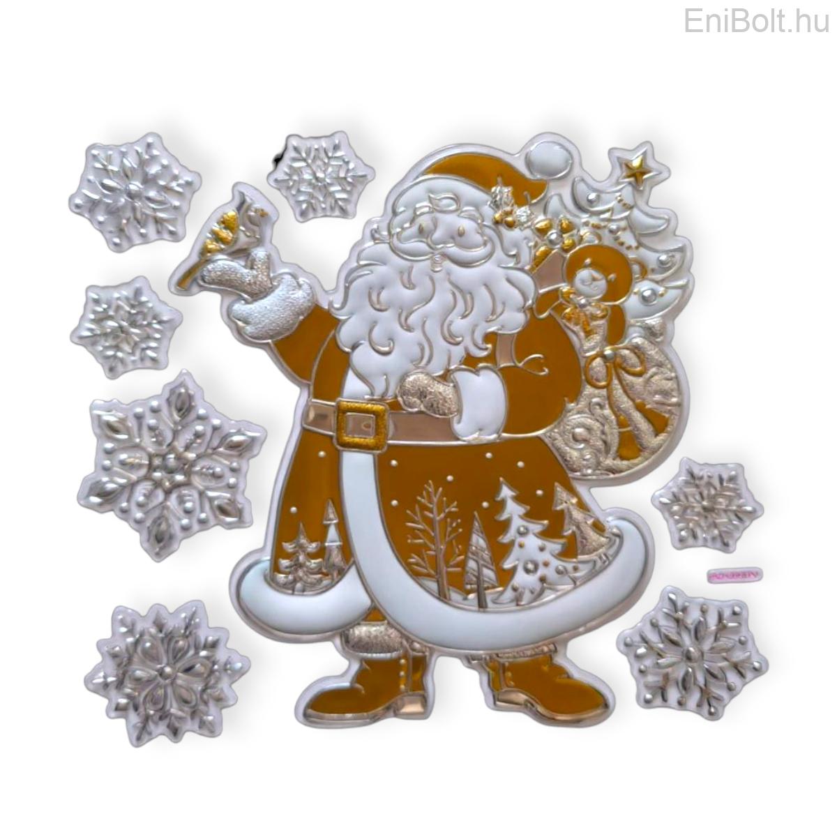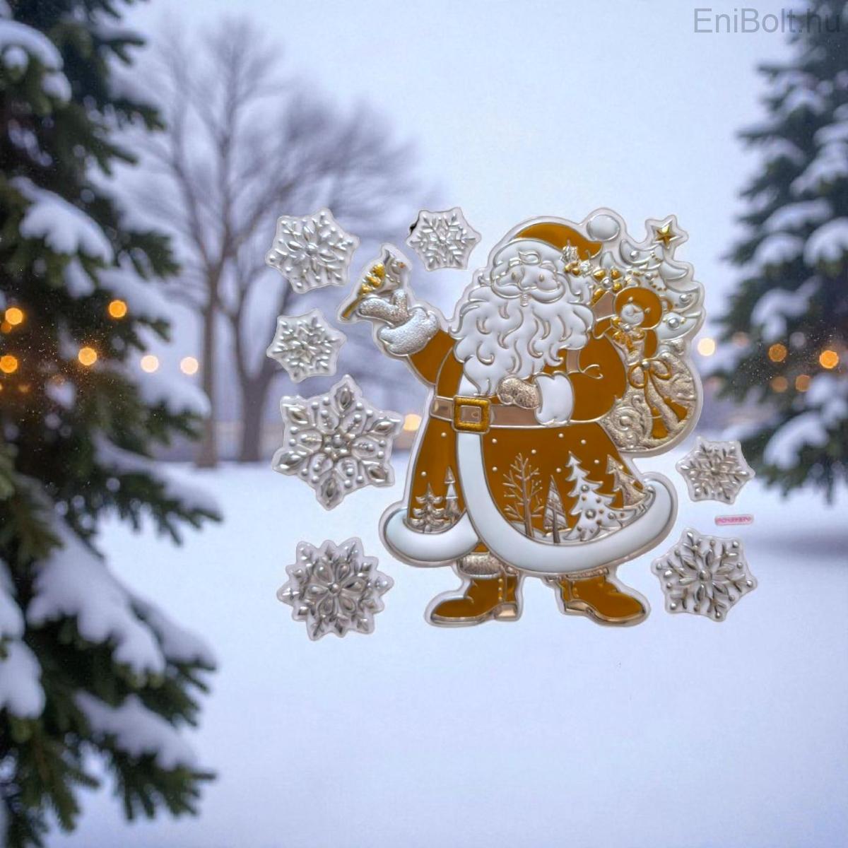 Kezdőlap » Karácsonyi dekorációk » Karácsonyi matricák » 3D karácsonyi ablakmatrica Mikulással és hópelyhekkel 17,5×18 cm