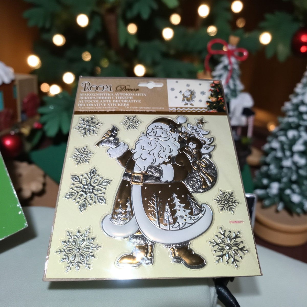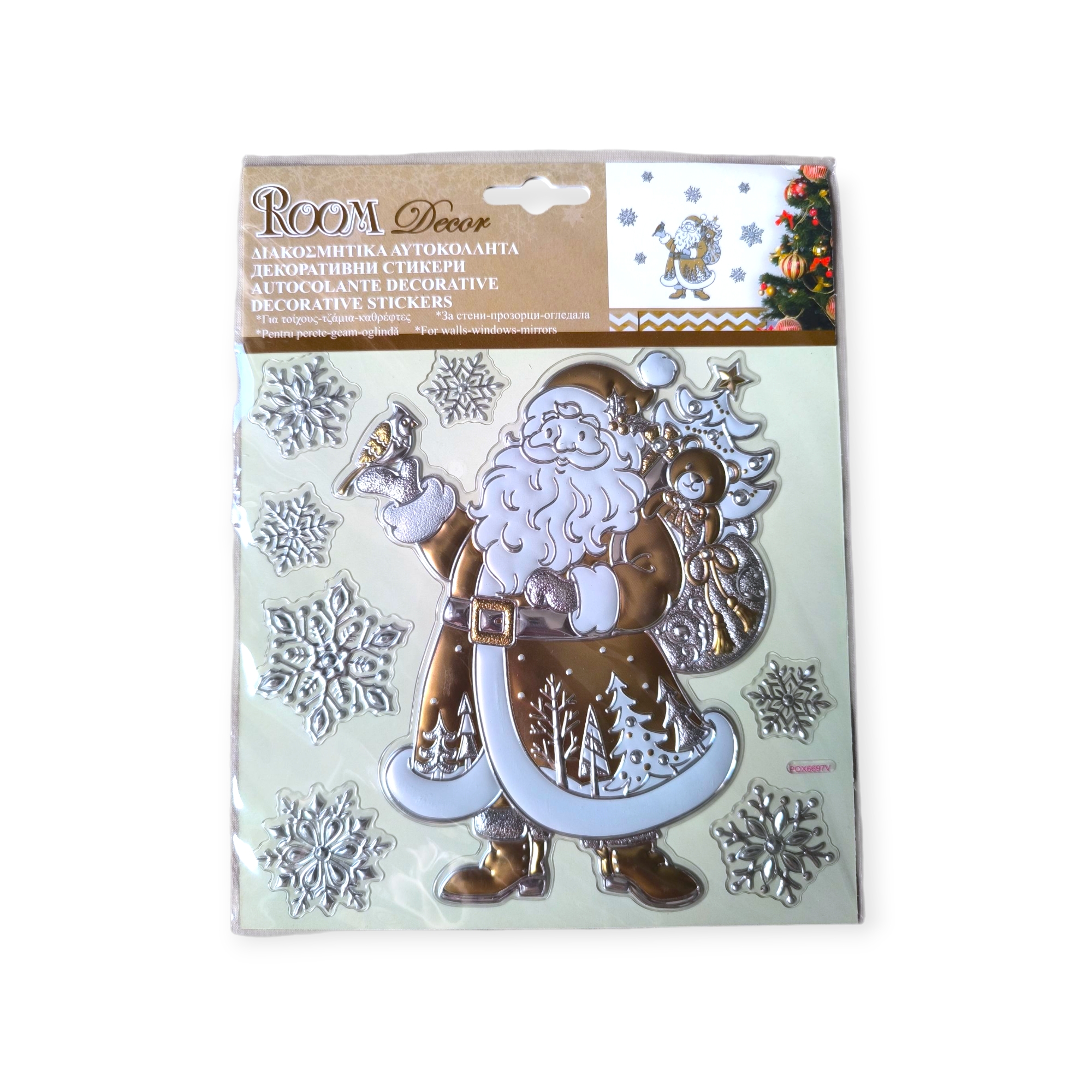 Kezdőlap » Karácsonyi dekorációk » Karácsonyi matricák » 3D karácsonyi matrica Mikulás ajándék hópehely 17,5×18 cm