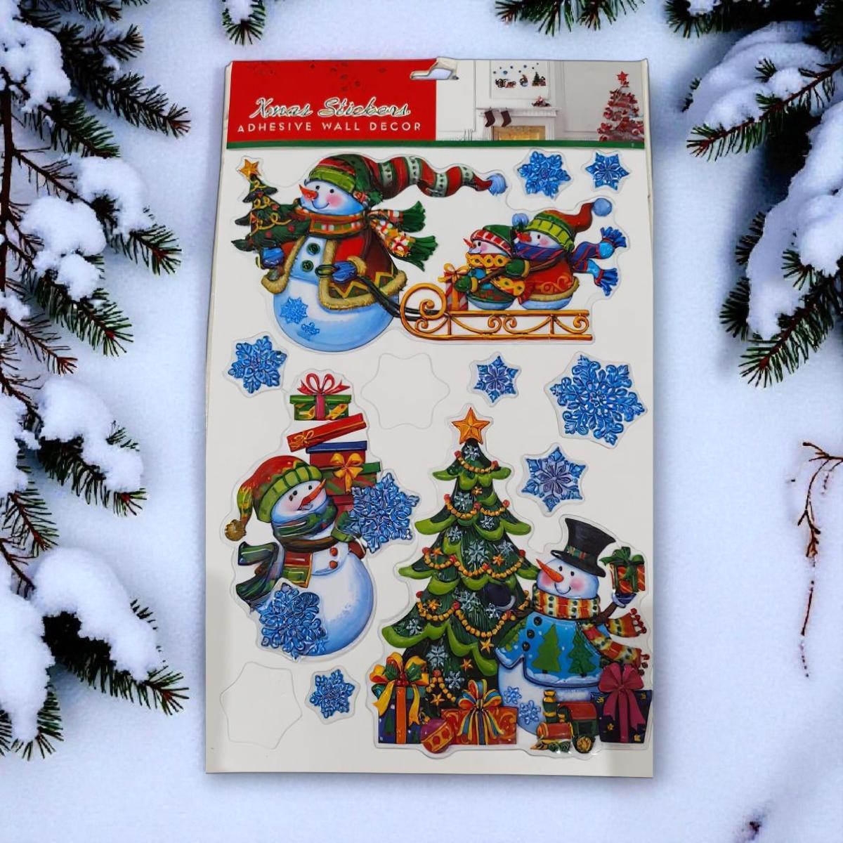 Kezdőlap » Karácsonyi dekorációk » Karácsonyi matricák » 3D karácsonyi matricák fenyőfával és hóemberekkel – 29x41 cm