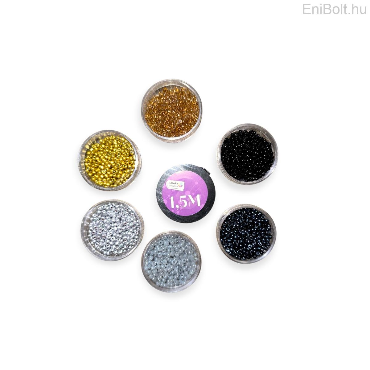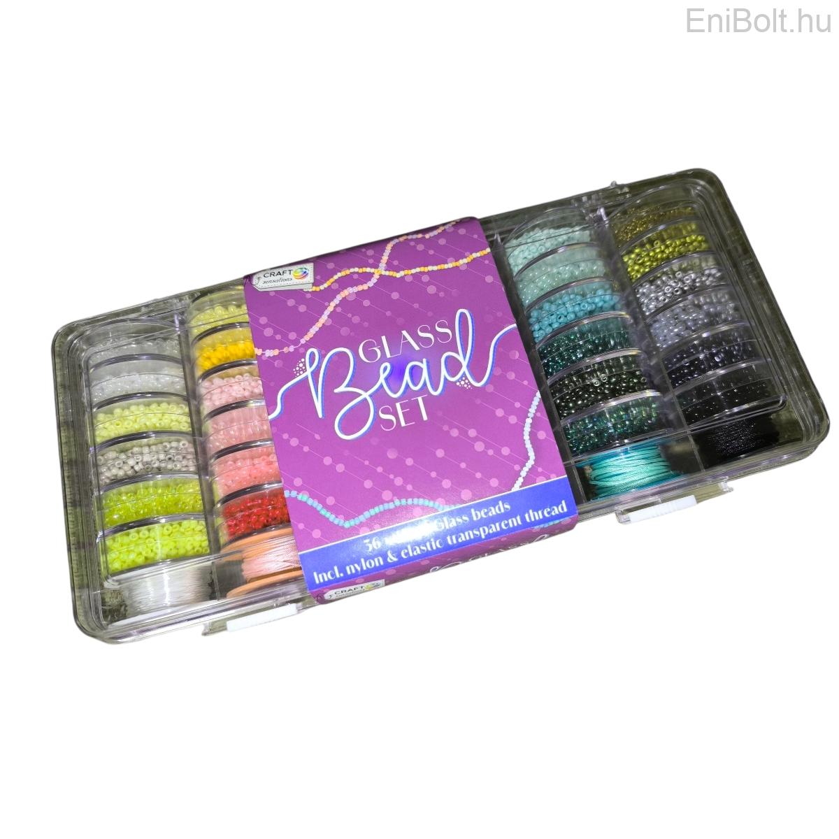 Praktikus gyöngykészlet kreatív alkotáshoz. A csomag 36 féle színes gyöngyöt és 6 db színes zsinórt tartalmaz, rendezett tárolódobozban. Ideális karkötők, nyakláncok, kulcstartók vagy egyedi ajándékok készítéséhez. Gyerekeknek és kézműveskedőknek egyaránt remek választás.