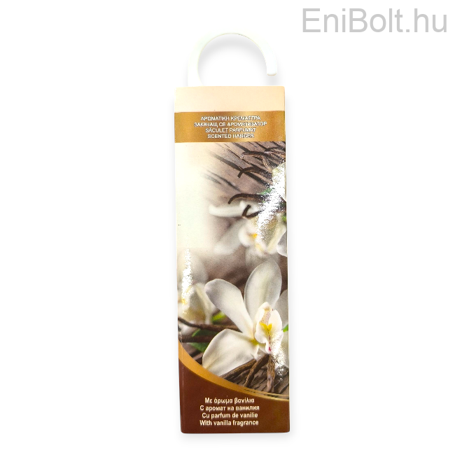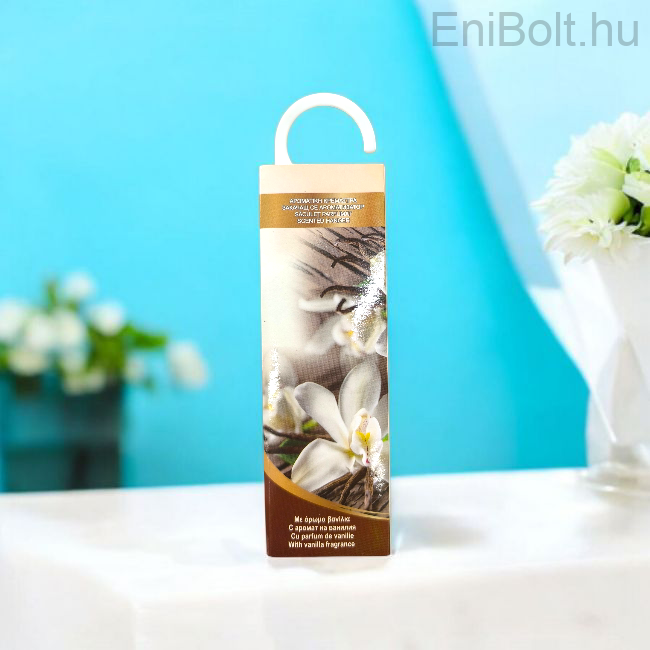 Akasztós szekrényillatosító kellemes vanília illattal. Praktikus formájának köszönhetően egyszerűen felakasztható a szekrényrúdra, fiókba vagy akár az autóba is. Finom, hosszan tartó illatot biztosít a ruhák és zárt terek számára.