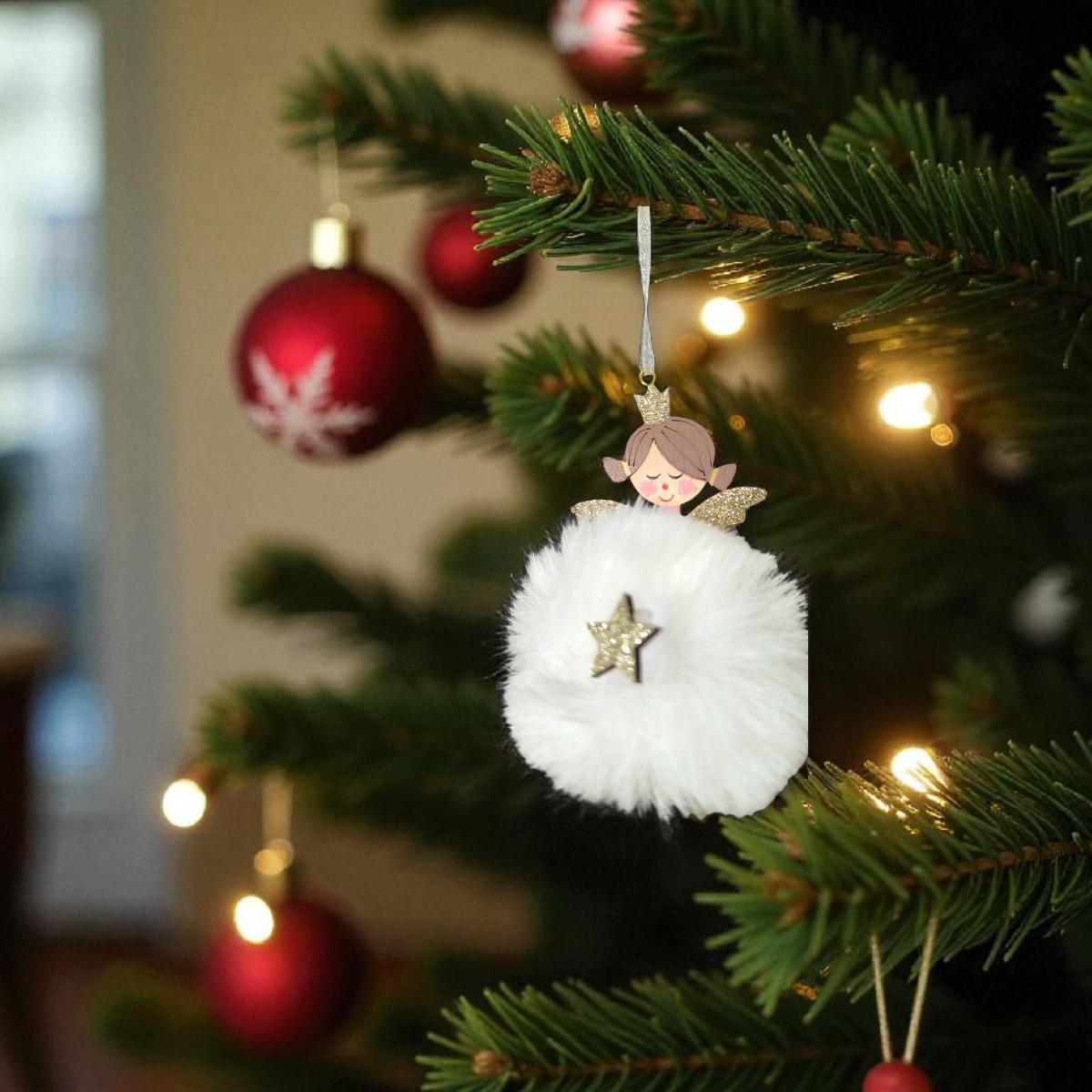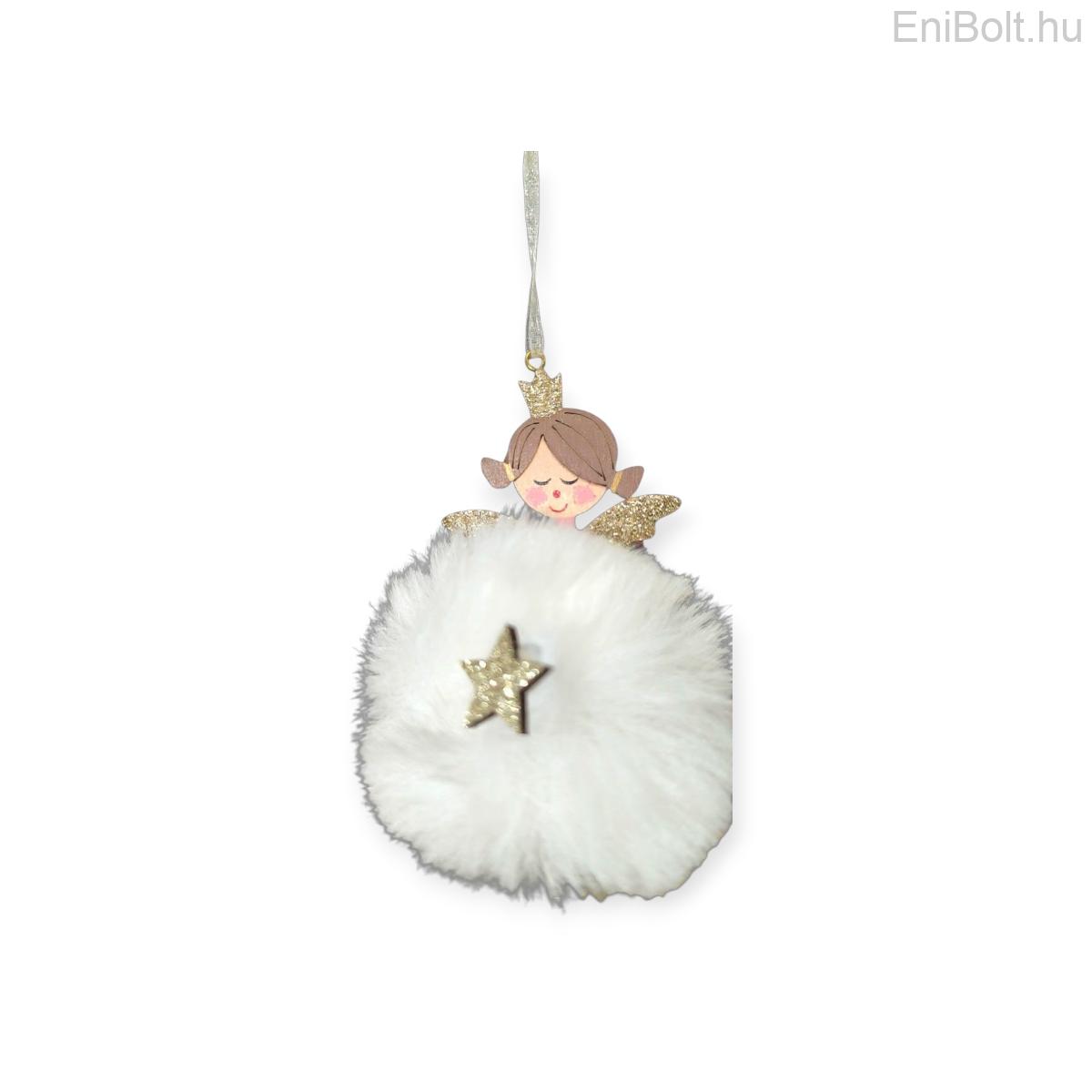 Kezdőlap » Karácsonyi dekorációk » Fából készült díszek » Angyal karácsonyfa dísz – fehér szőrme, 10 cm