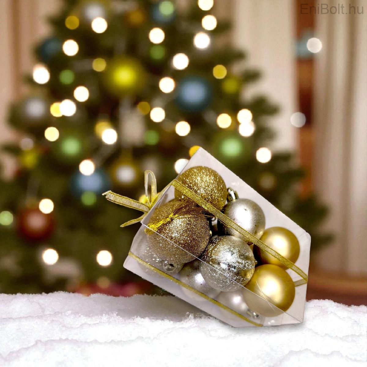Arany bézs karácsonyfadísz gömb szett 5cm – 12db