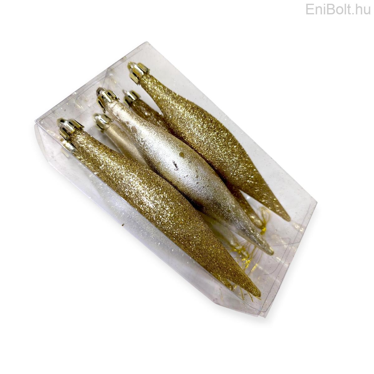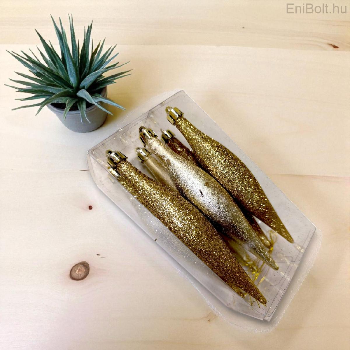 Arany elegancia csepp alakú karácsonyfadísz szett – 6 db, 16 cm