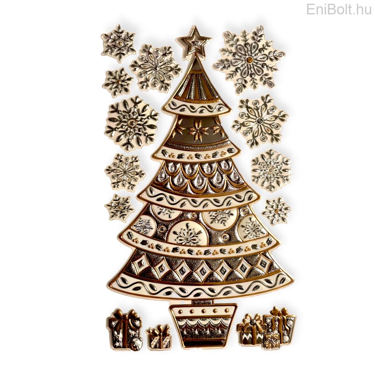 Arany-ezüst karácsonyi ablakmatrica – fenyőfa és hópelyhek 24×41 cm dekor