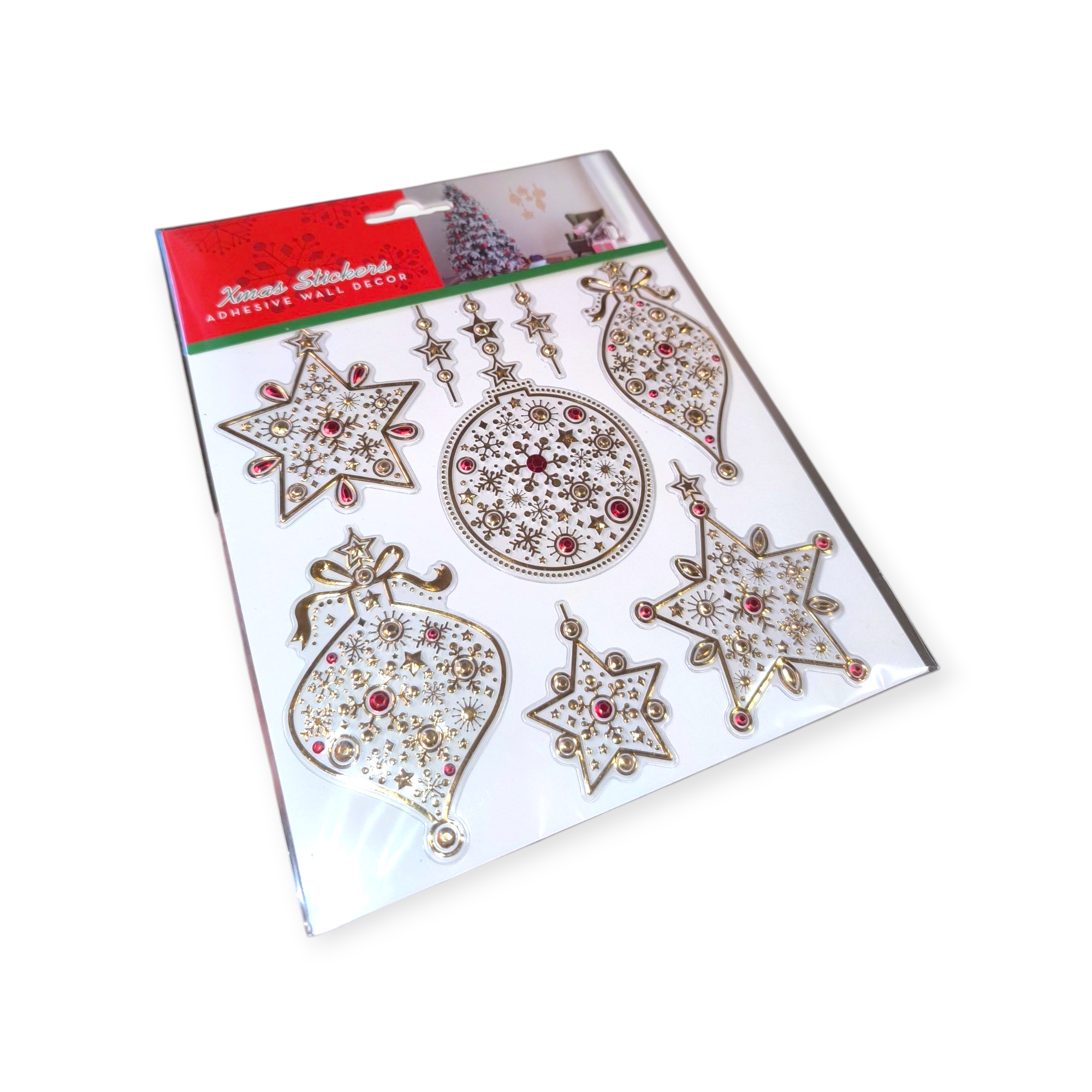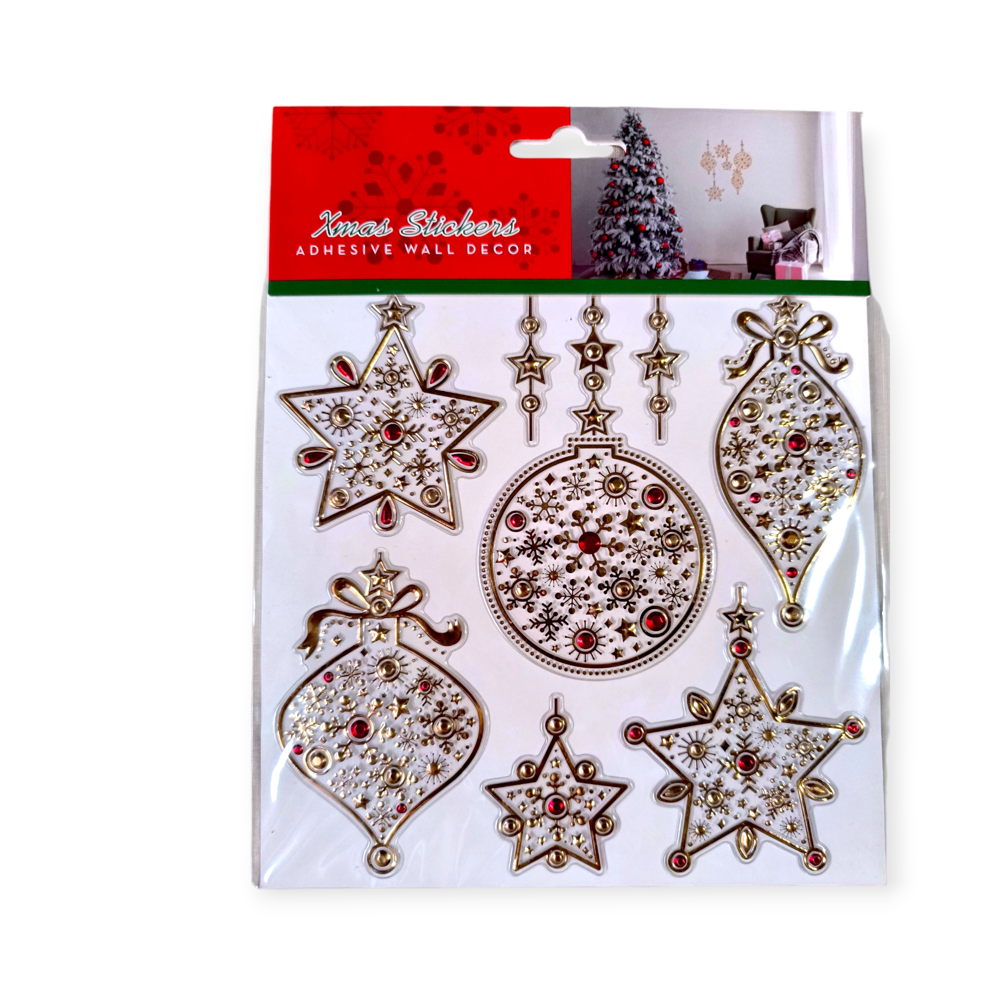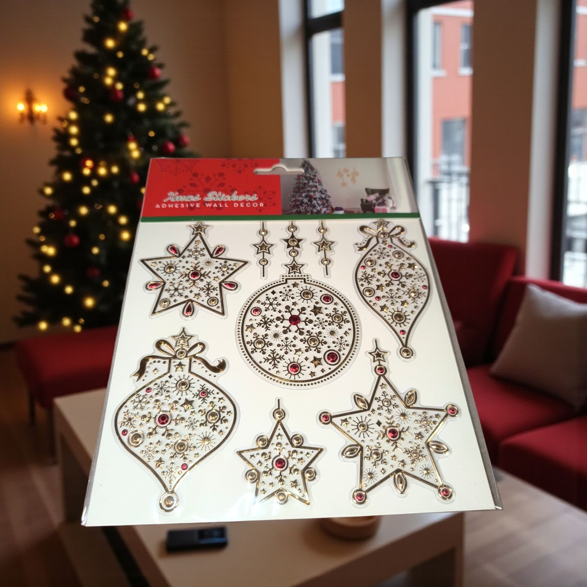 Tedd különlegessé otthonodat ezzel az arany függő díszeket ábrázoló matricával! A klasszikus karácsonyi motívumok fényes részletekkel hozzák el az ünnepi hangulatot, legyen szó ablakról, falról vagy tükörről.