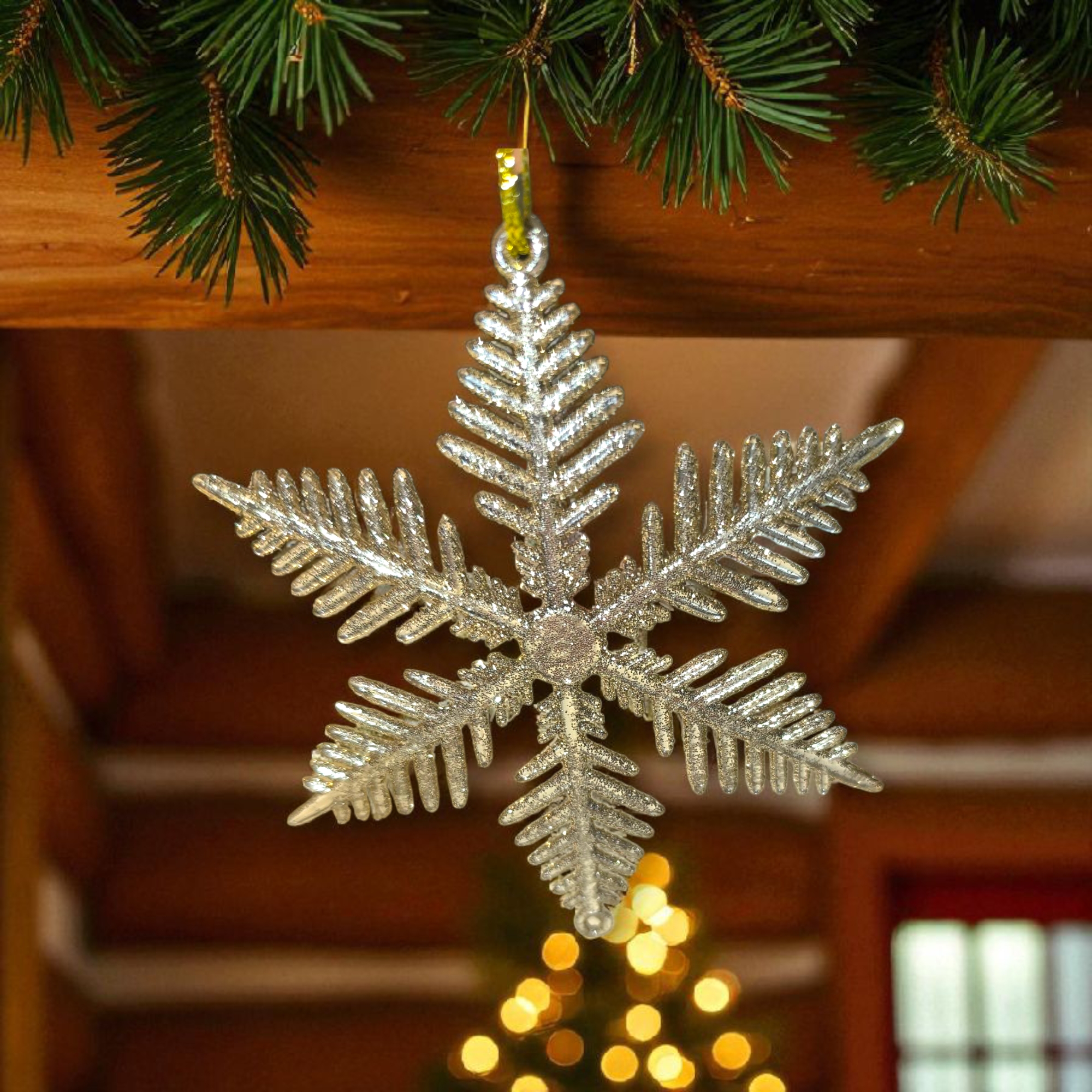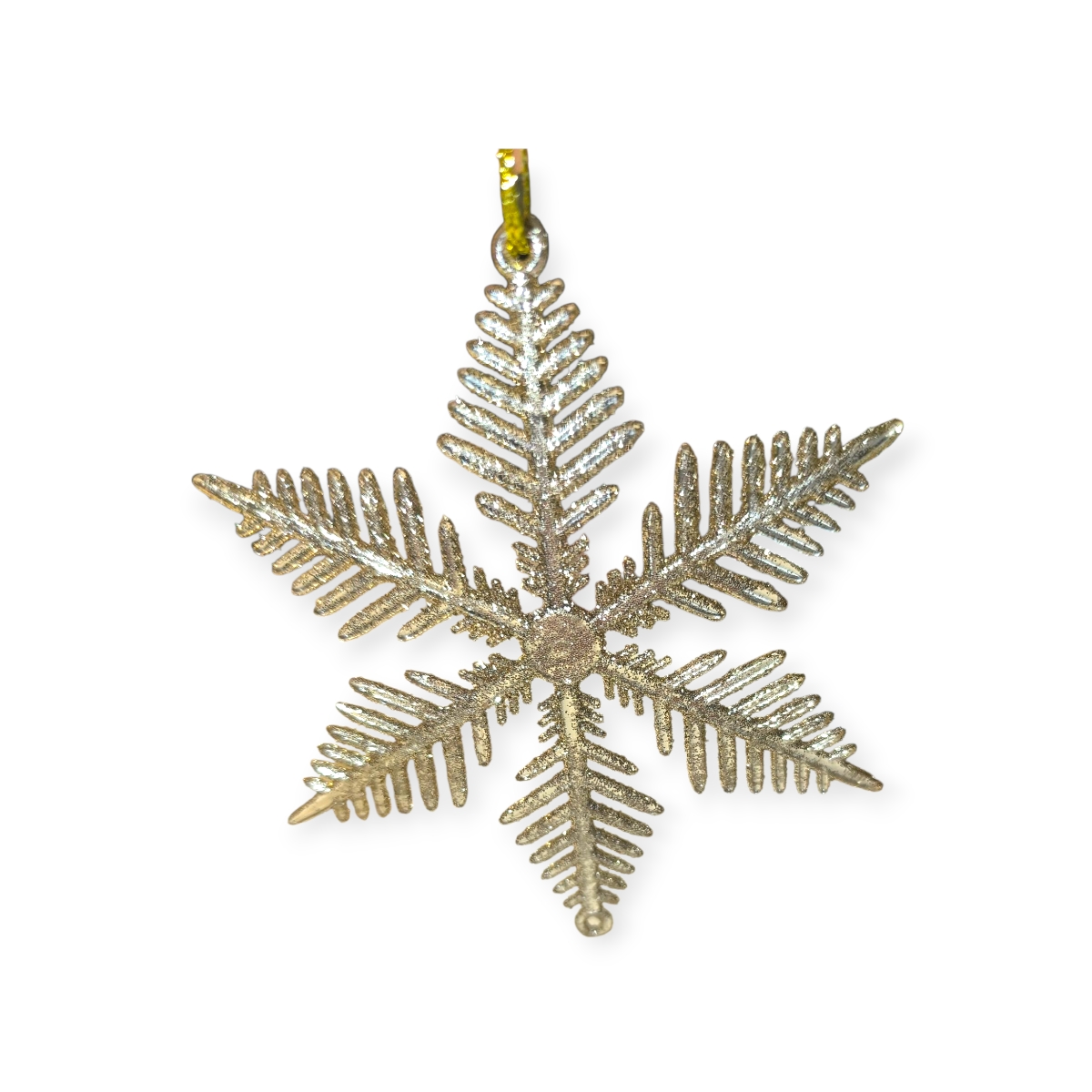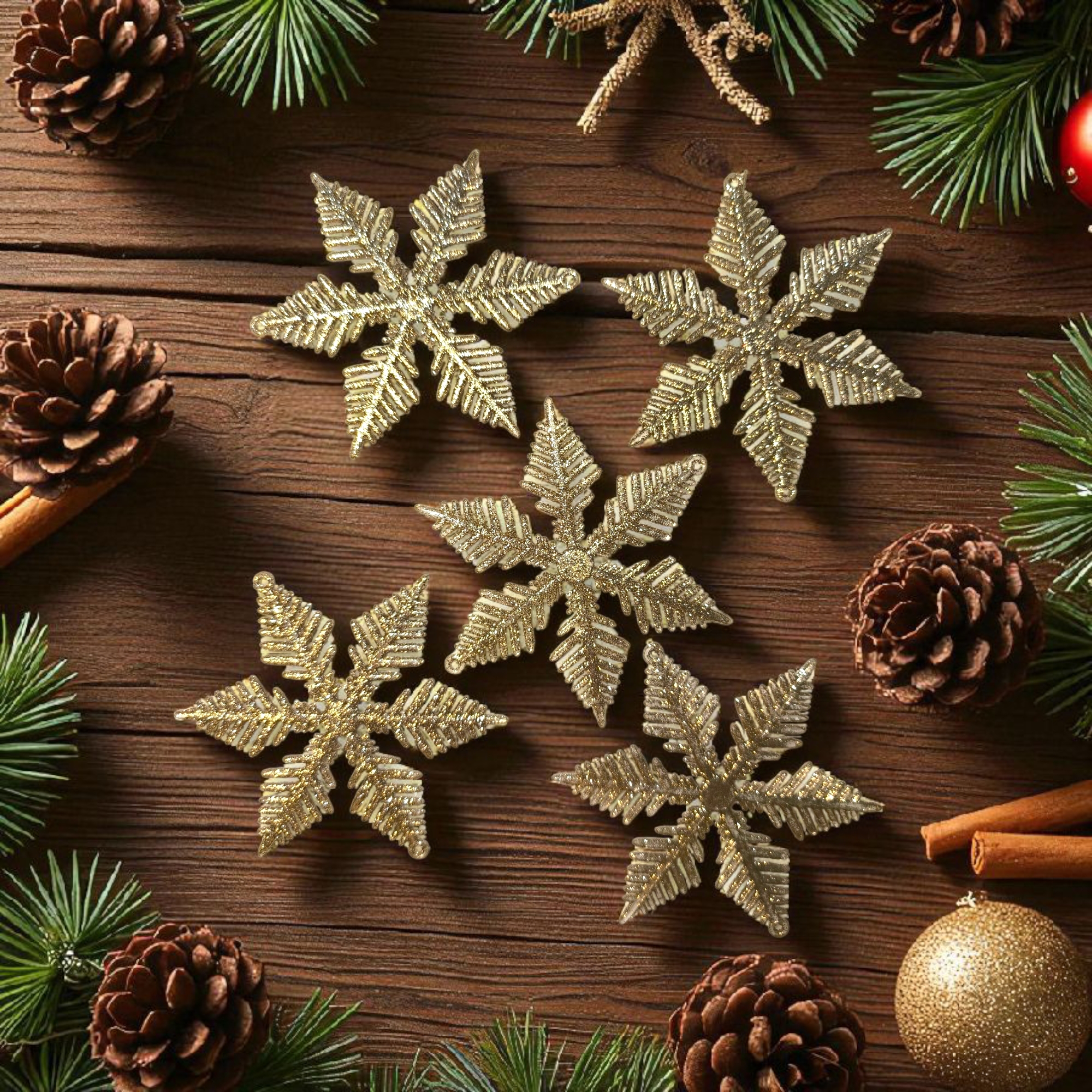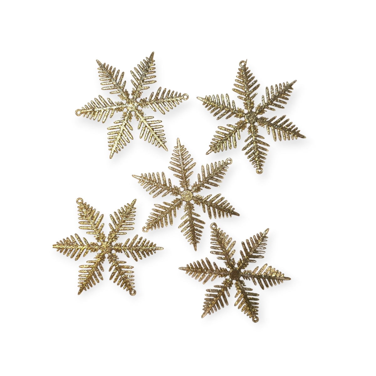 Csillogó arany hópihe díszek karácsonyfára (5 db-os szett, 8 cm)