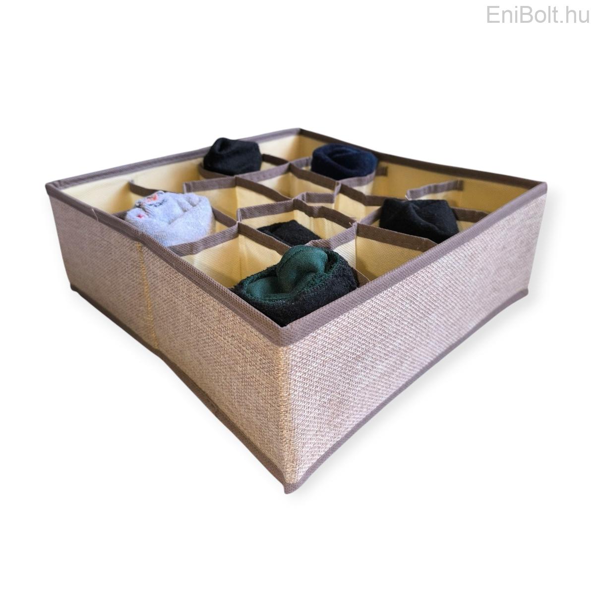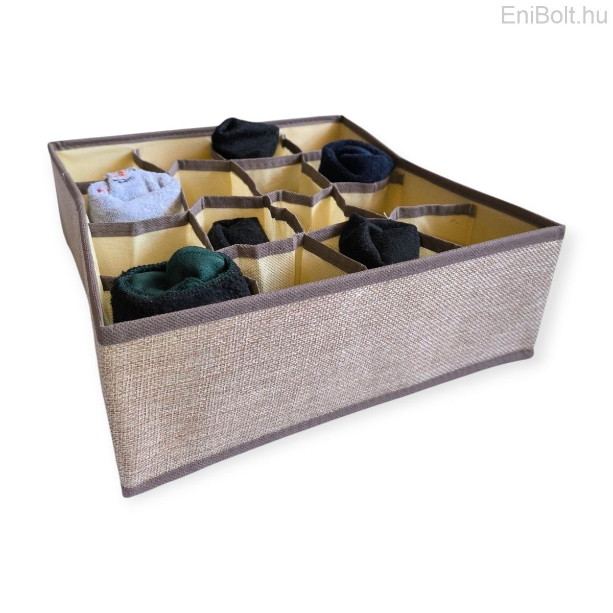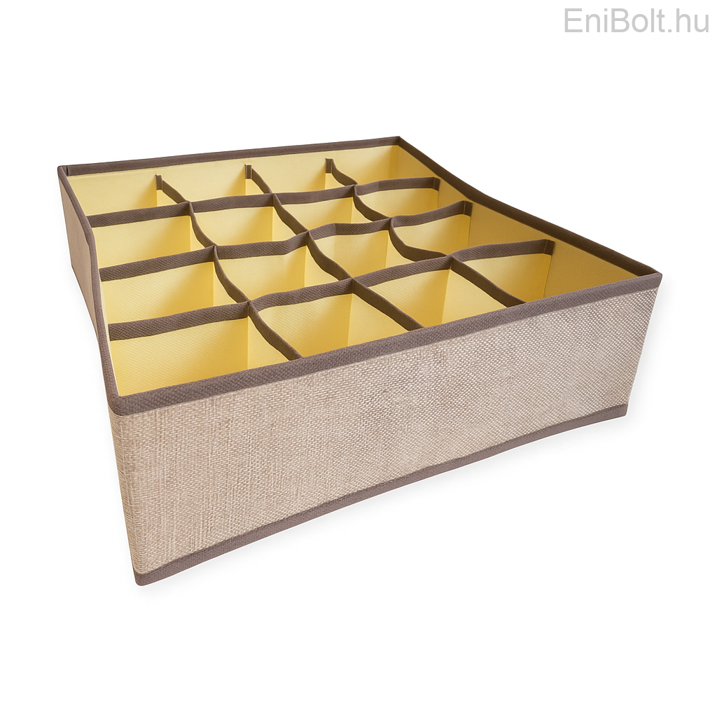 Bézs-barna textil tároló – 16 rekeszes rendszerező doboz, 30×30×10,5 cm