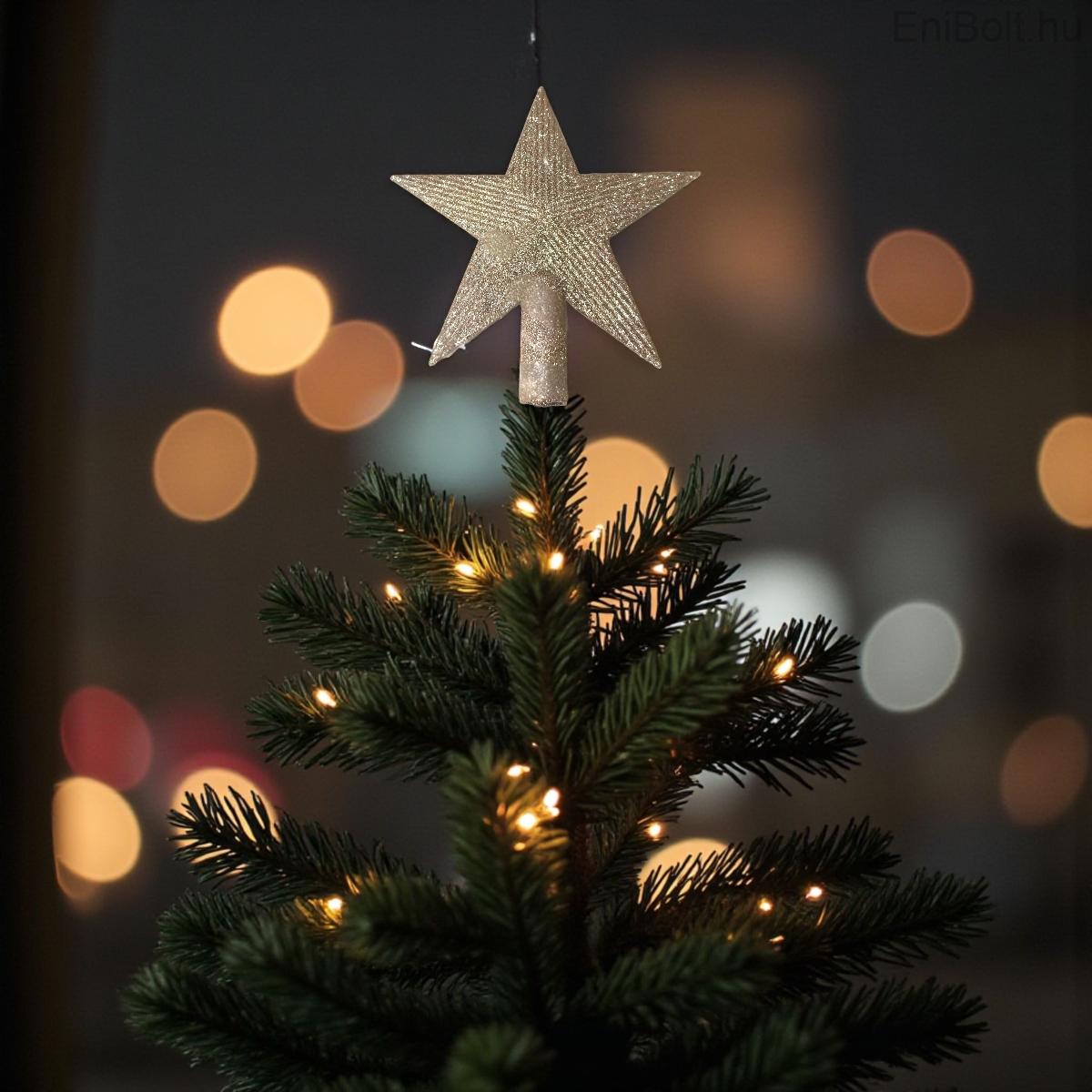 Ez a bézs, csillag alakú karácsonyfa csúcsdísz a pezsgő csillámokkal elegáns, mégis meghitt ünnepi hangulatot teremt. Finoman csillogó felülete a karácsonyfa fényeiben különleges ragyogást kap, így az ünnepi dekoráció középpontjává válik.