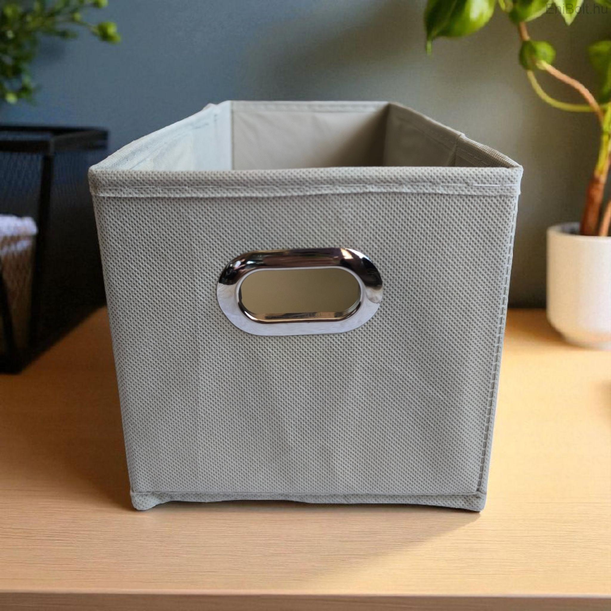 Ez a praktikus és dekoratív tárolódoboz bézs színű szövetborítással készül, amely jól illeszkedik bármilyen belső térbe. A fedél nélküli kialakítás megkönnyíti a gyors hozzáférést, míg a fémgyűrű tartós fogást és könnyű kezelhetőséget biztosít.