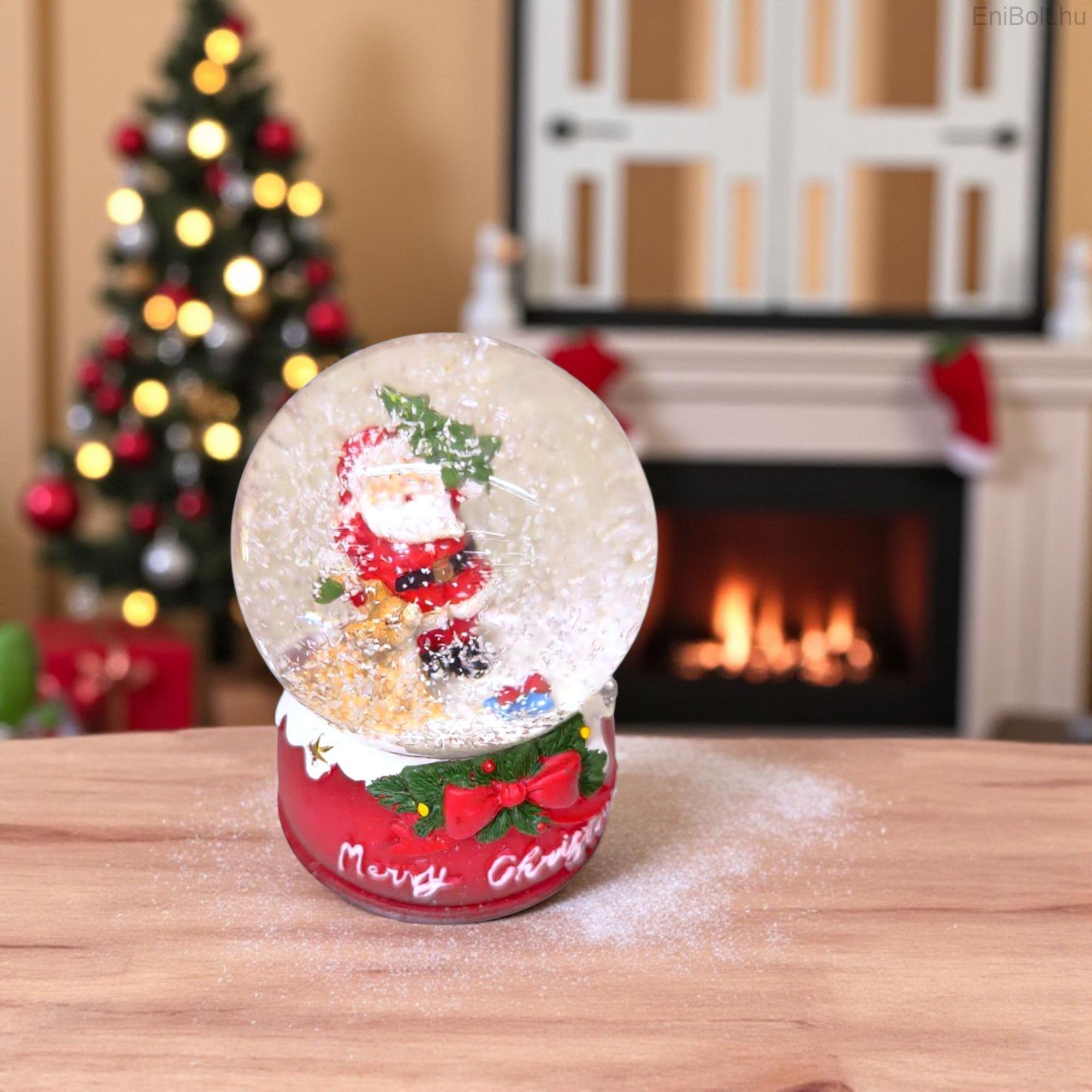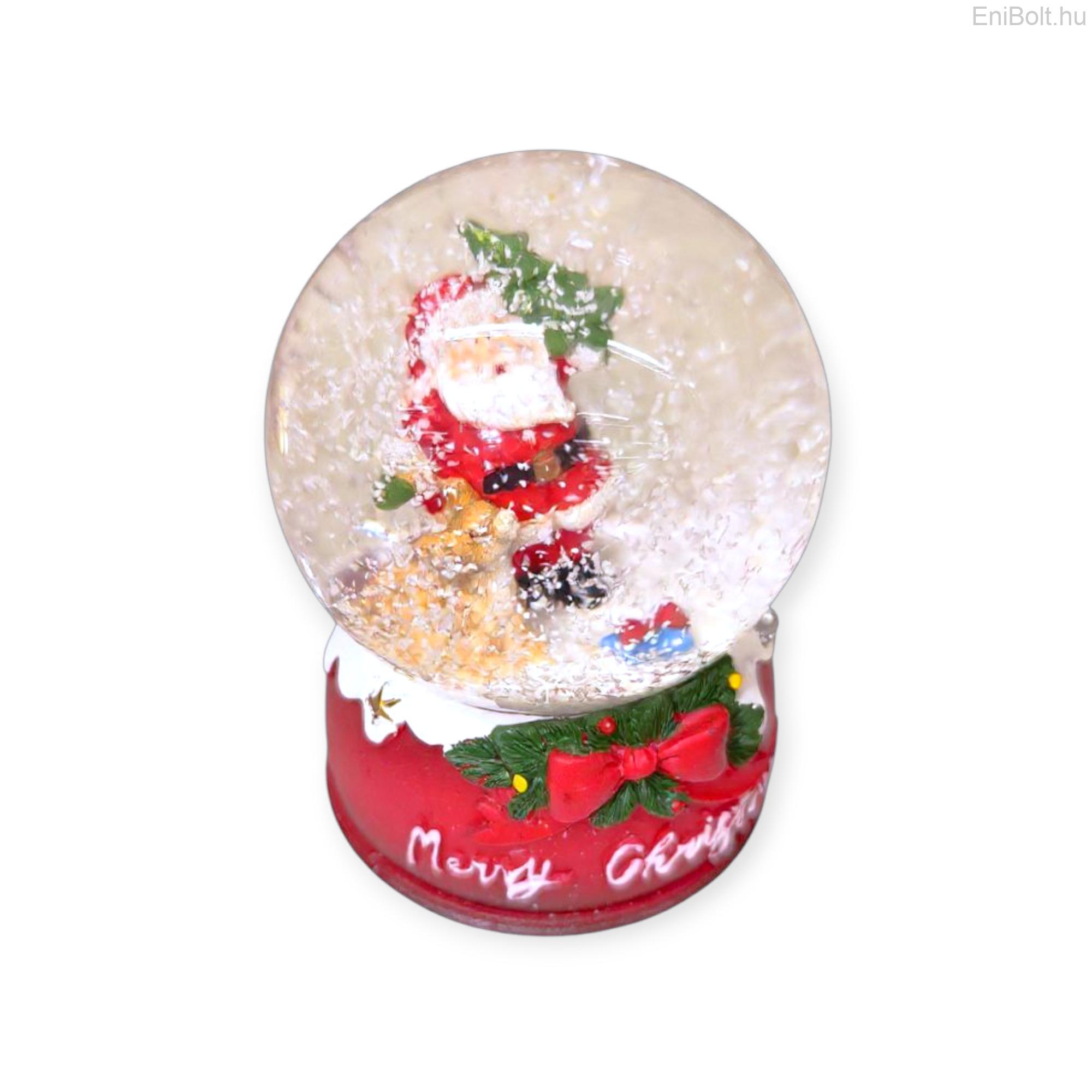 Kezdőlap » Karácsonyi dekorációk » Hógömbök » Boldog karácsonyt Mikulás hógömb piros alapon 9 cm