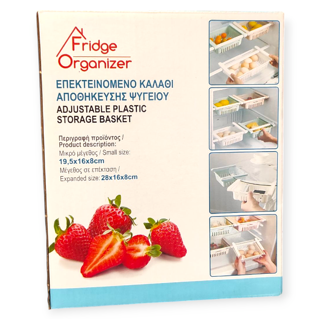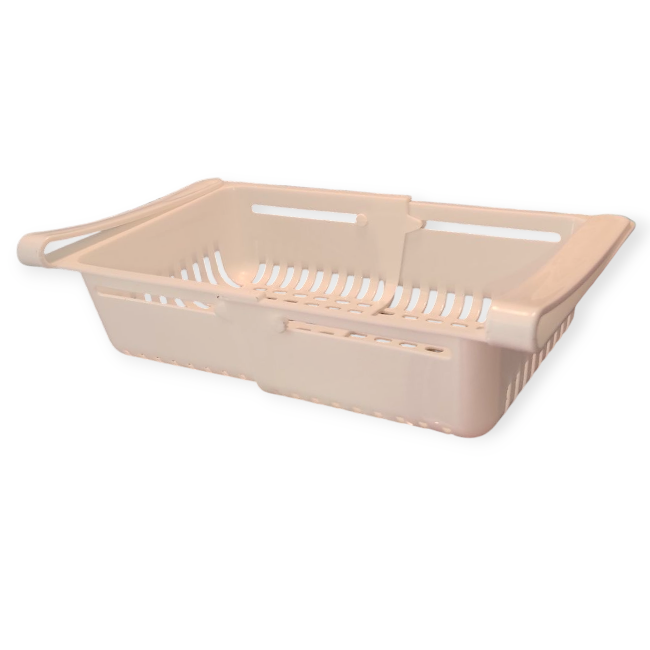 Kezdőlap » Otthon » Konyhai eszközök, kiegészítők » Konyhai tárolás és szervezés » Bővíthető fehér műanyag tárolókosár hűtőszekrénybe – 19,5×16×8 cm