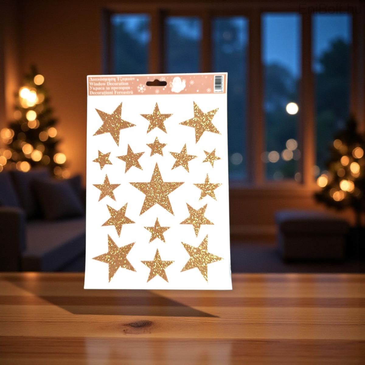 Kezdőlap » Karácsonyi dekorációk » Karácsonyi matricák » Bronz csillogó karácsonyi ablakmatrica – csillagos dekoráció 20×30 cm