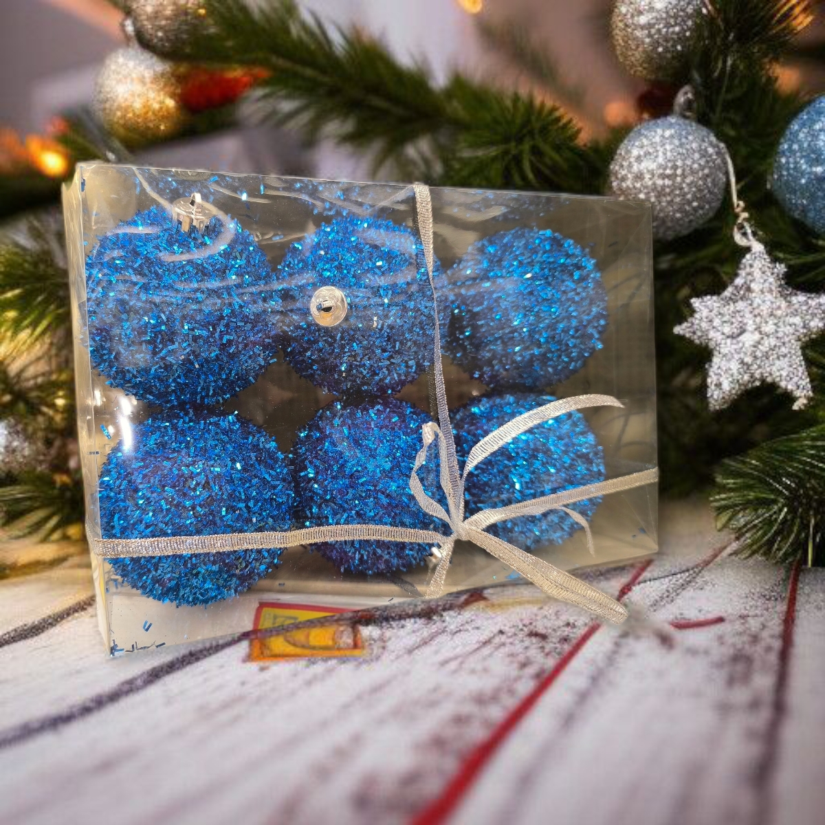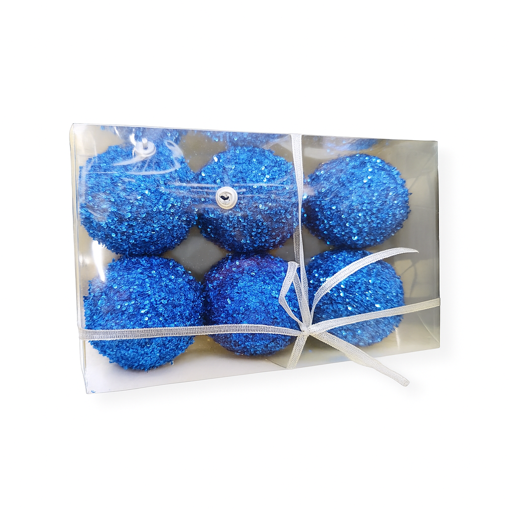 Ragyogó türkiz csillámos karácsonyi gömbök, melyek elegáns fényt és ünnepi hangulatot visznek a karácsonyfádra. A 6 darabos, 8 cm-es díszek modern és klasszikus dekorációhoz egyaránt illenek.