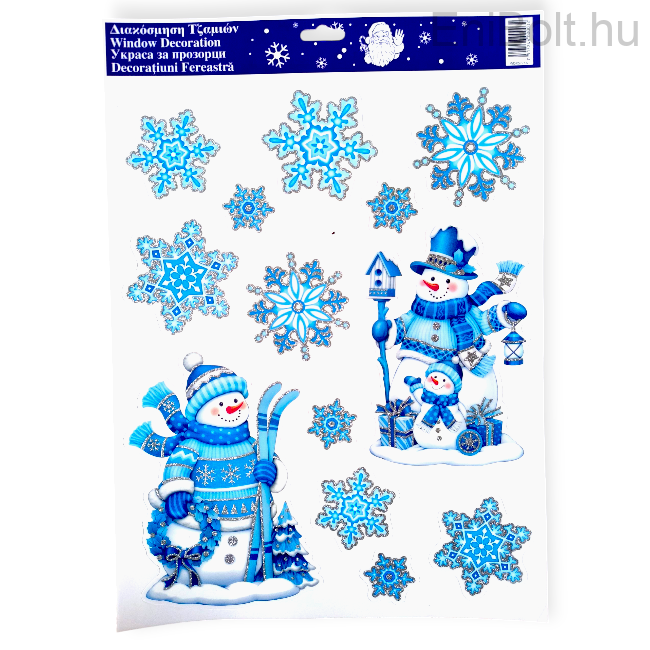 Kezdőlap » Karácsonyi dekorációk » Karácsonyi matricák » Csillogó hóemberes ablakmatrica – karácsonyi dekoráció 30x42 cm