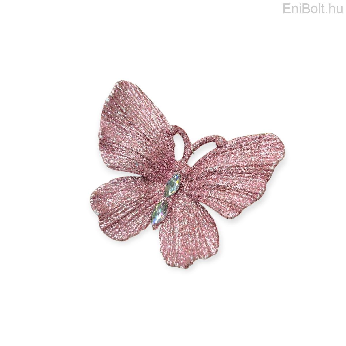 Csillogó rózsaszín karácsonyfadísz pillangó kristályokkal 11x9 cm