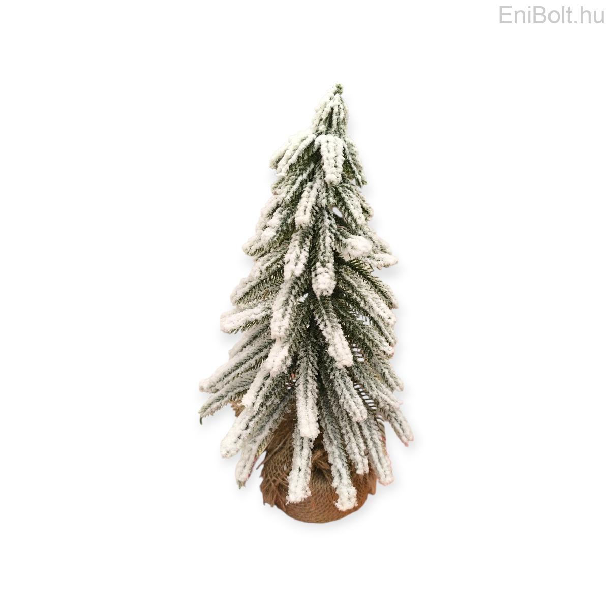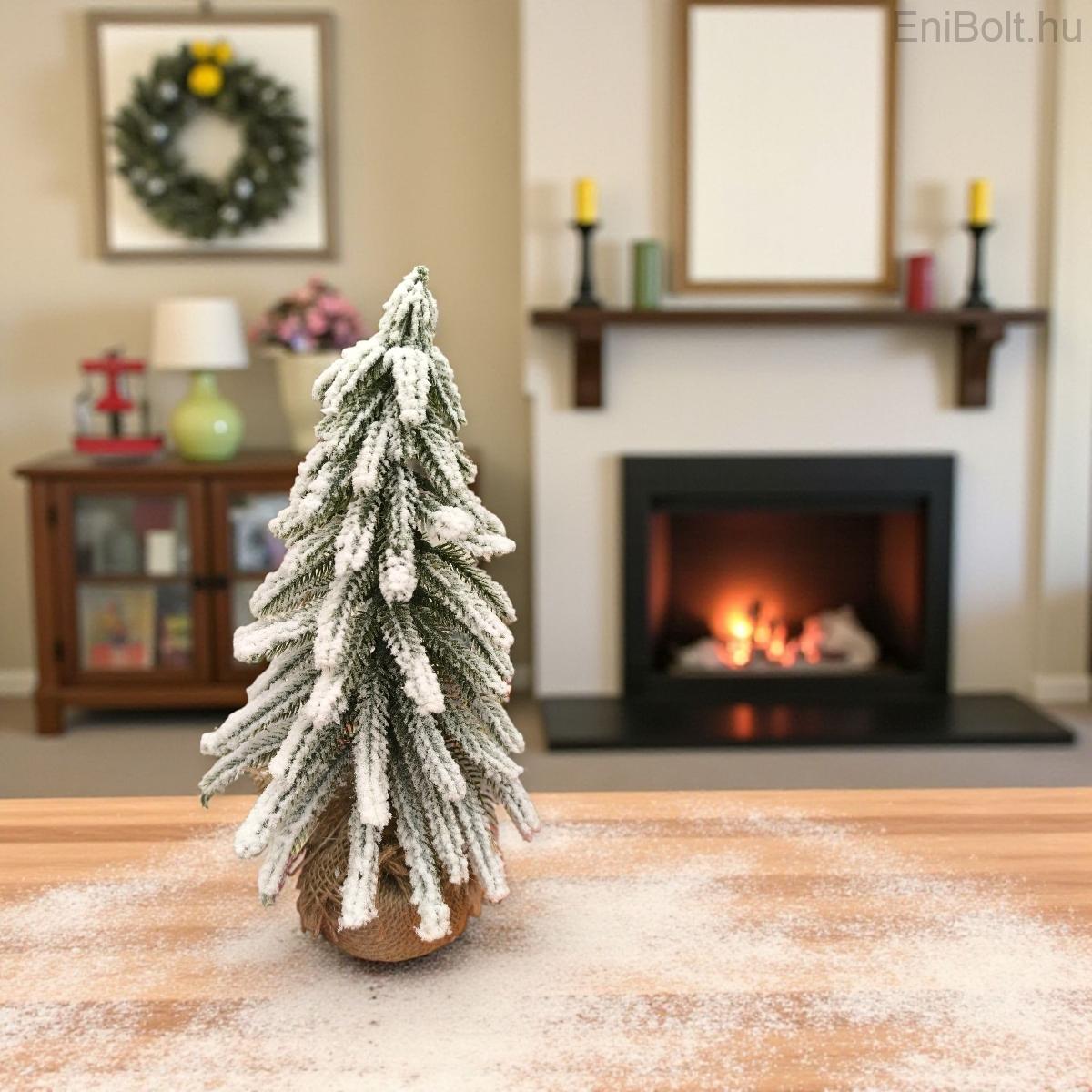 Kezdőlap » Karácsonyi dekorációk » Dekoratív hóval borított karácsonyfa juta talppal 28cm