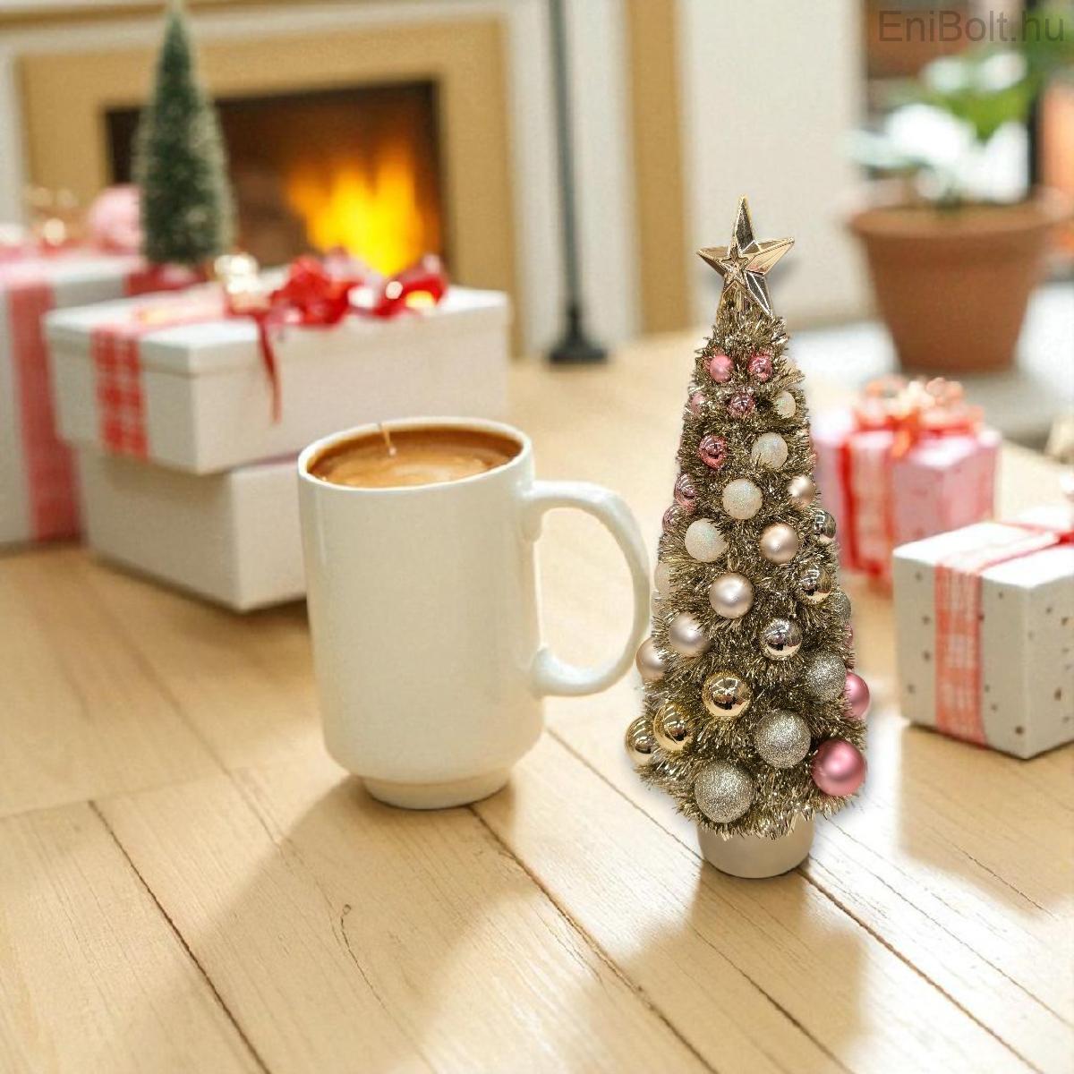Dekoratív karácsonyfa pezsgő bézs rózsaszín díszekkel 40cm