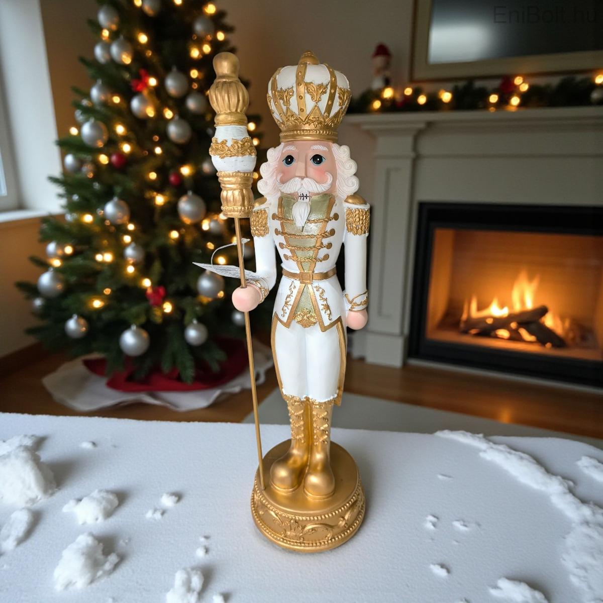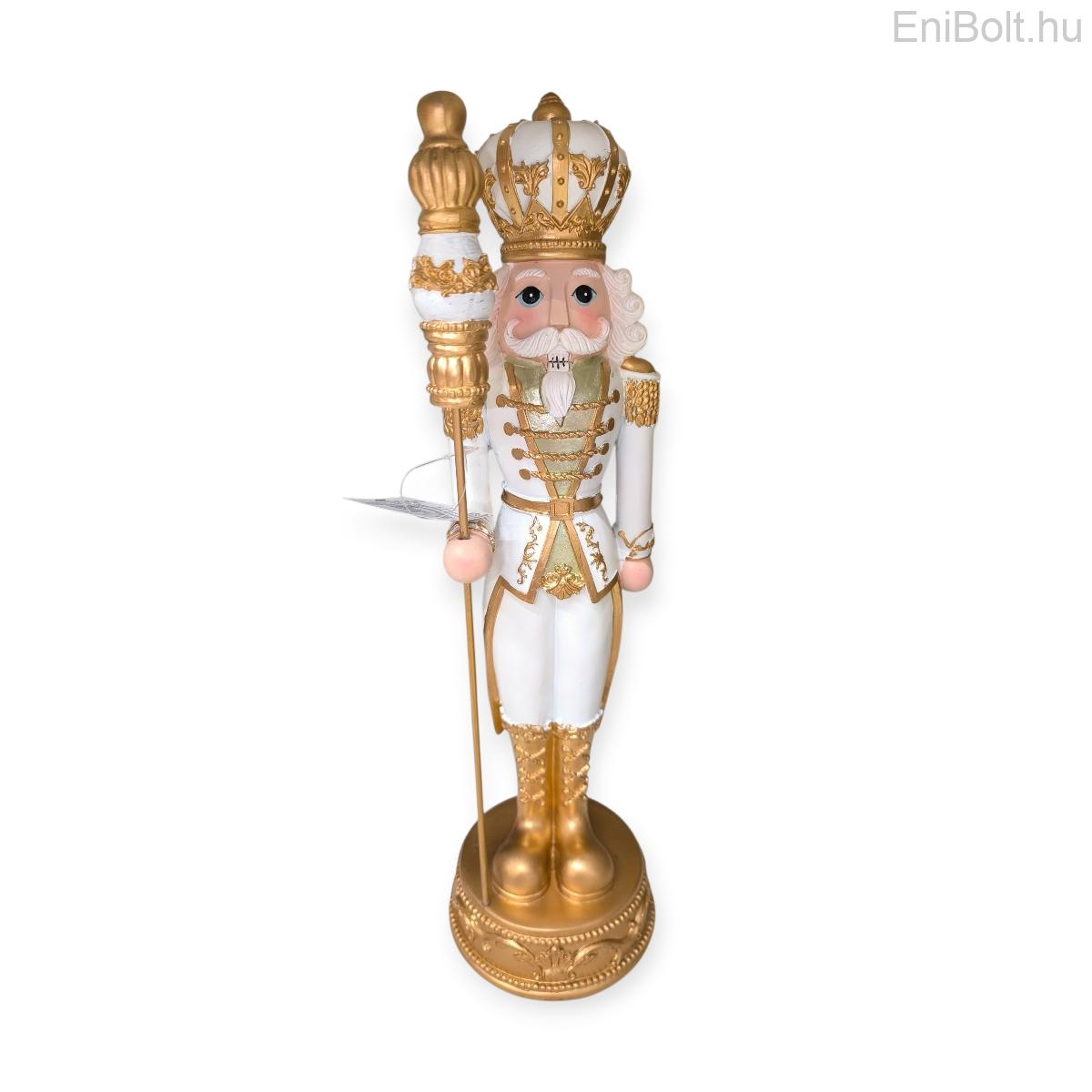 Dekoratív karácsonyi király figura fehér egyenruhával és arany jogarral 42 cm