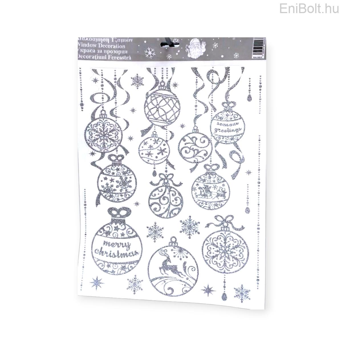 Kezdőlap » Karácsonyi dekorációk » Karácsonyi matricák » Dekoratív karácsonyi matricák – függő gömbök csillogó ezüsttel 30x42cm