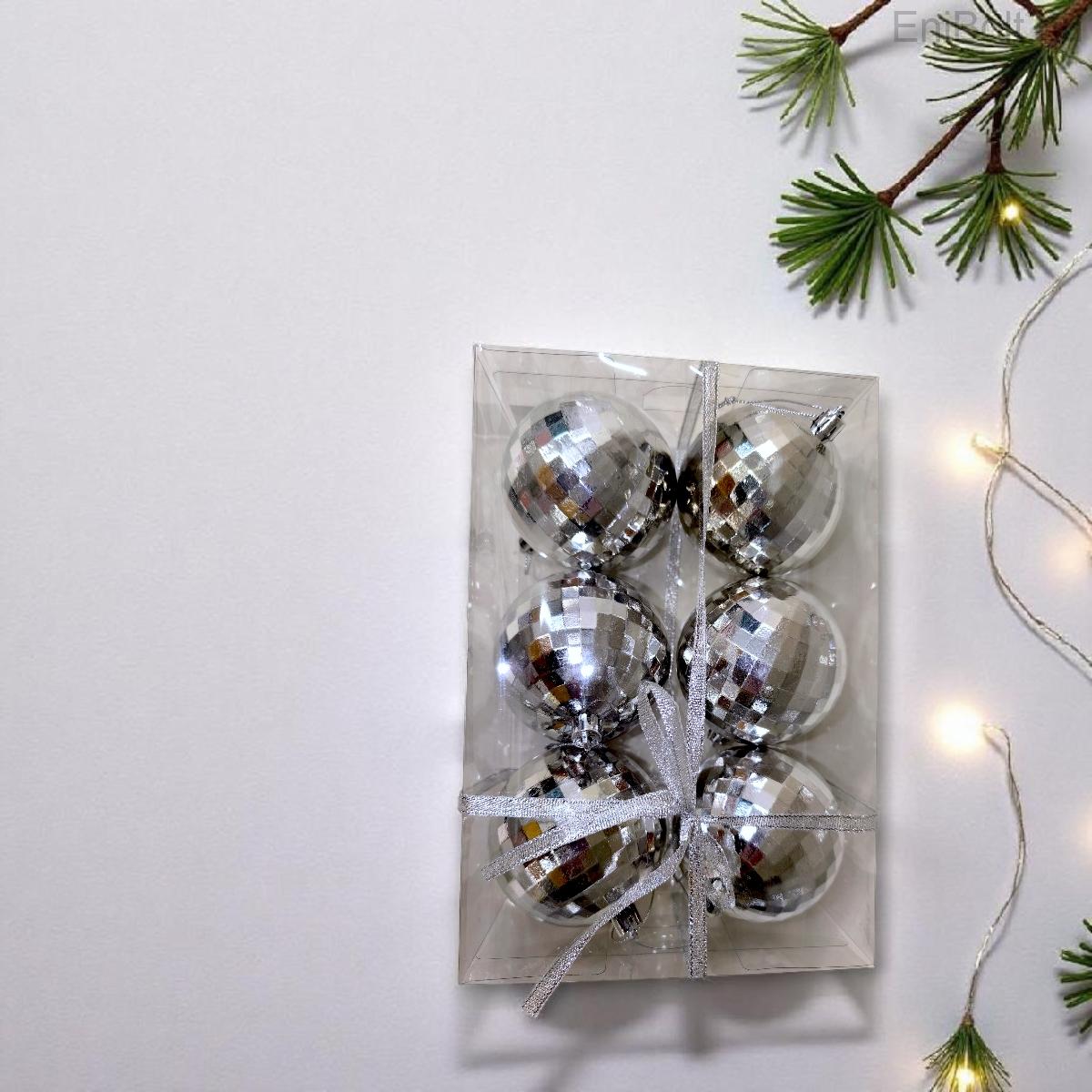 Dobd fel karácsonyfádat ezzel a 6 darabos ezüst diszkógömb díszkészlettel, amely tükrös felületének köszönhetően csodásan veri vissza a fényeket, és igazi ünnepi hangulatot varázsol az otthonodba!