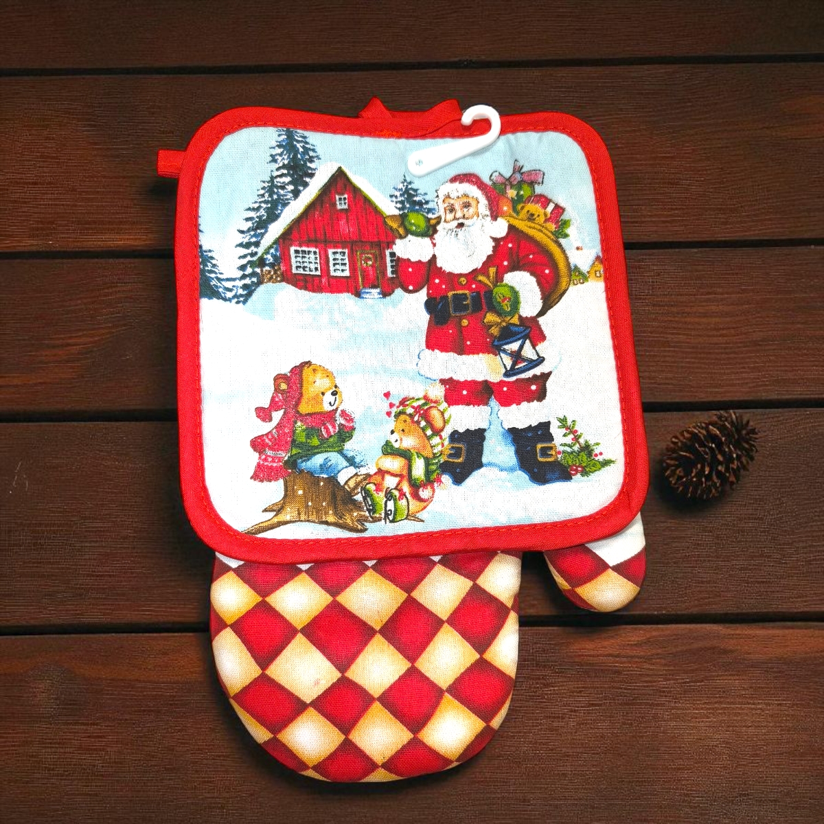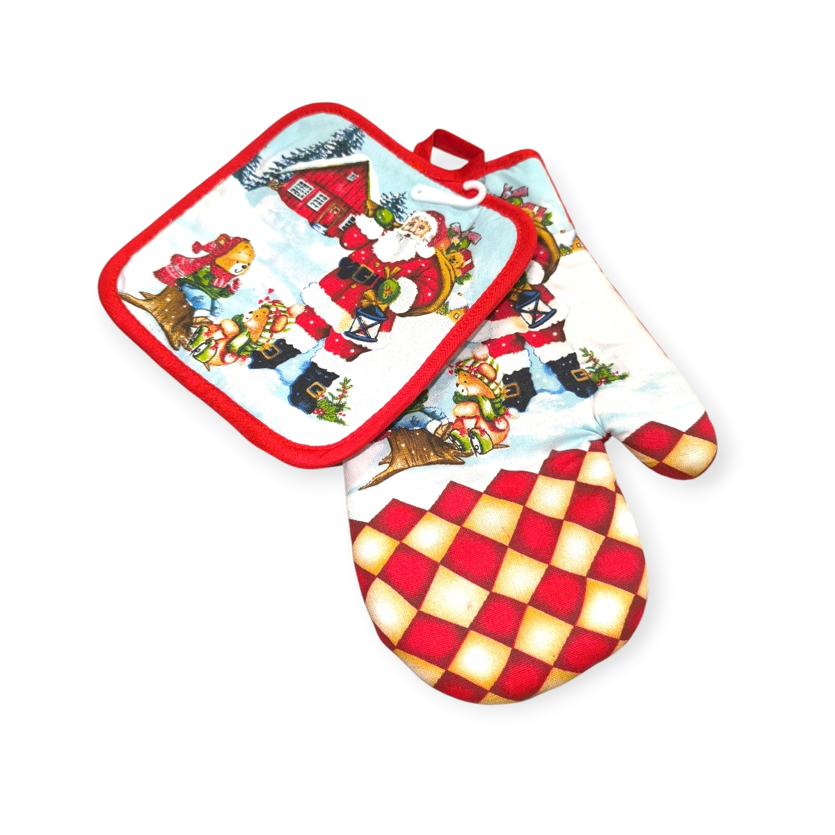 Kezdőlap » Karácsonyi dekorációk » Karácsonyi konyhai kiegészítők » Edényfogó kesztyű szett Mikulás mintával – 2 db, piros