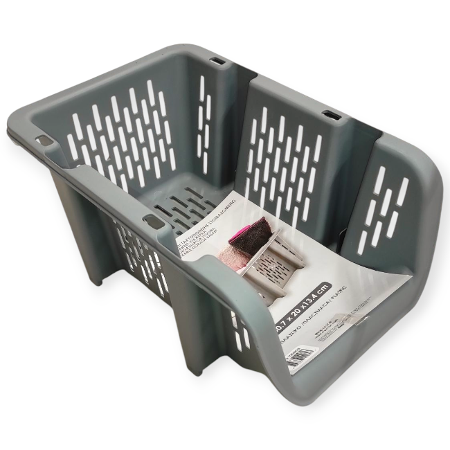 Kezdőlap » Otthon » Konyhai eszközök, kiegészítők » Konyhai tárolás és szervezés » Egymásra rakható szürke tárolókosár 30x20x13 cm