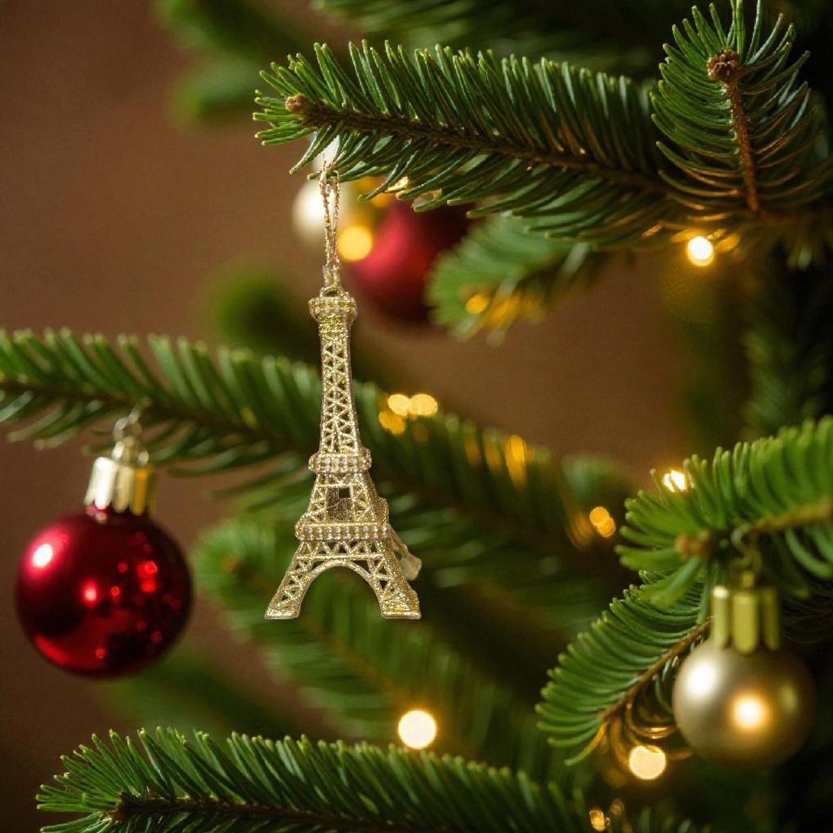 Elegáns Eiffel-torony formájú karácsonyi dísz pezsgő színű csillámmal. Használható asztaldíszként vagy akasztható dekorációként, hogy otthonod ragyogjon az ünnepek alatt. A modern pezsgő árnyalat és a csillogó felület különleges, ünnepi hangulatot teremt.