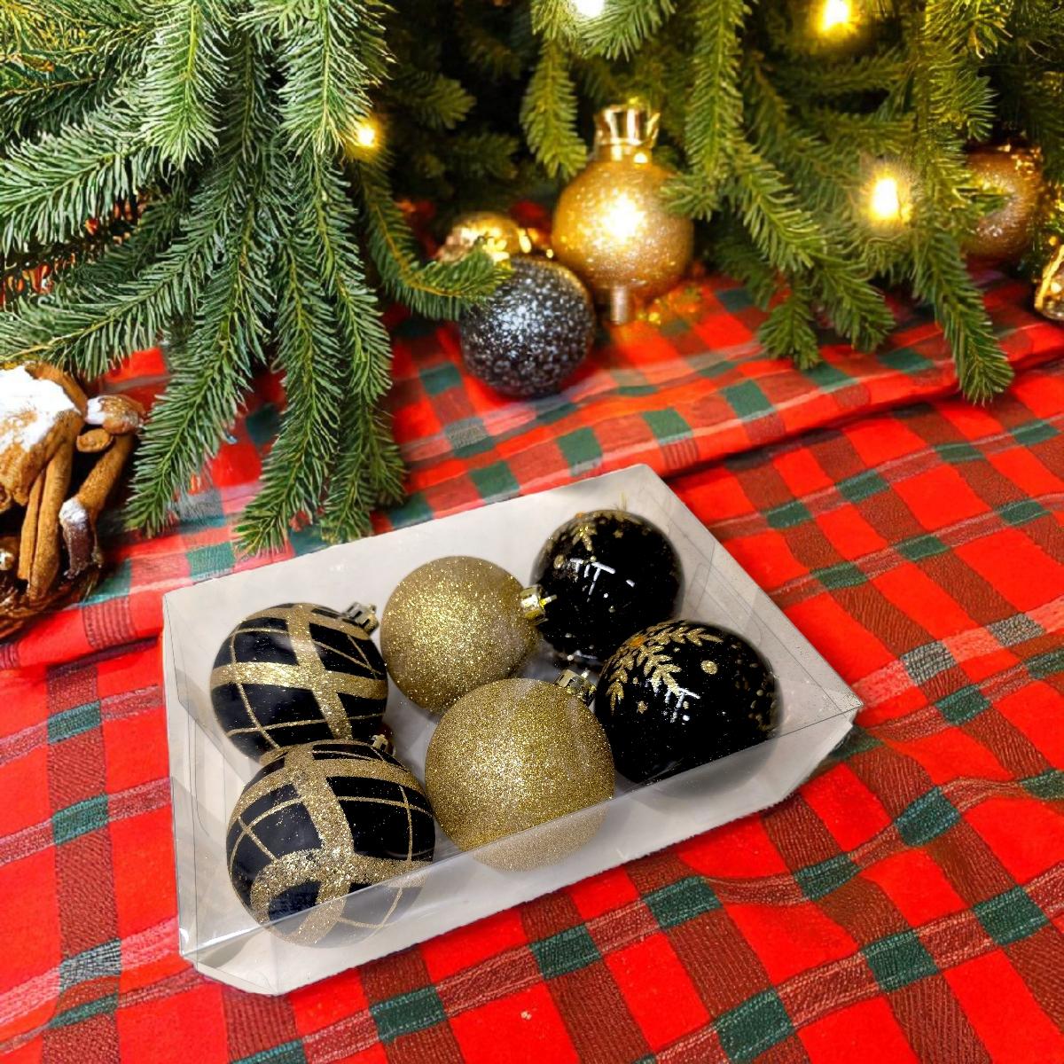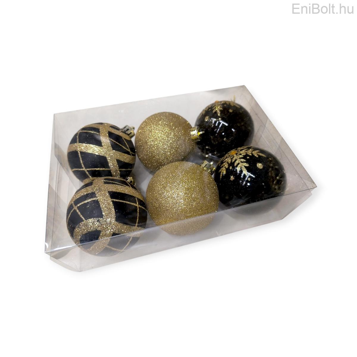 Kezdőlap » Karácsonyi dekorációk » Karácsonyfa gömbök » Arany díszek » Éjfény fekete-arany karácsonyfadísz szett csillámos pelyhes Ø8cm – 6db