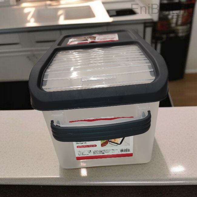 Kezdőlap » Otthon » Konyhai eszközök, kiegészítők » Konyhai tárolás és szervezés » Élelmiszertároló doboz – 15 L, átlátszó, fedeles, gurulós