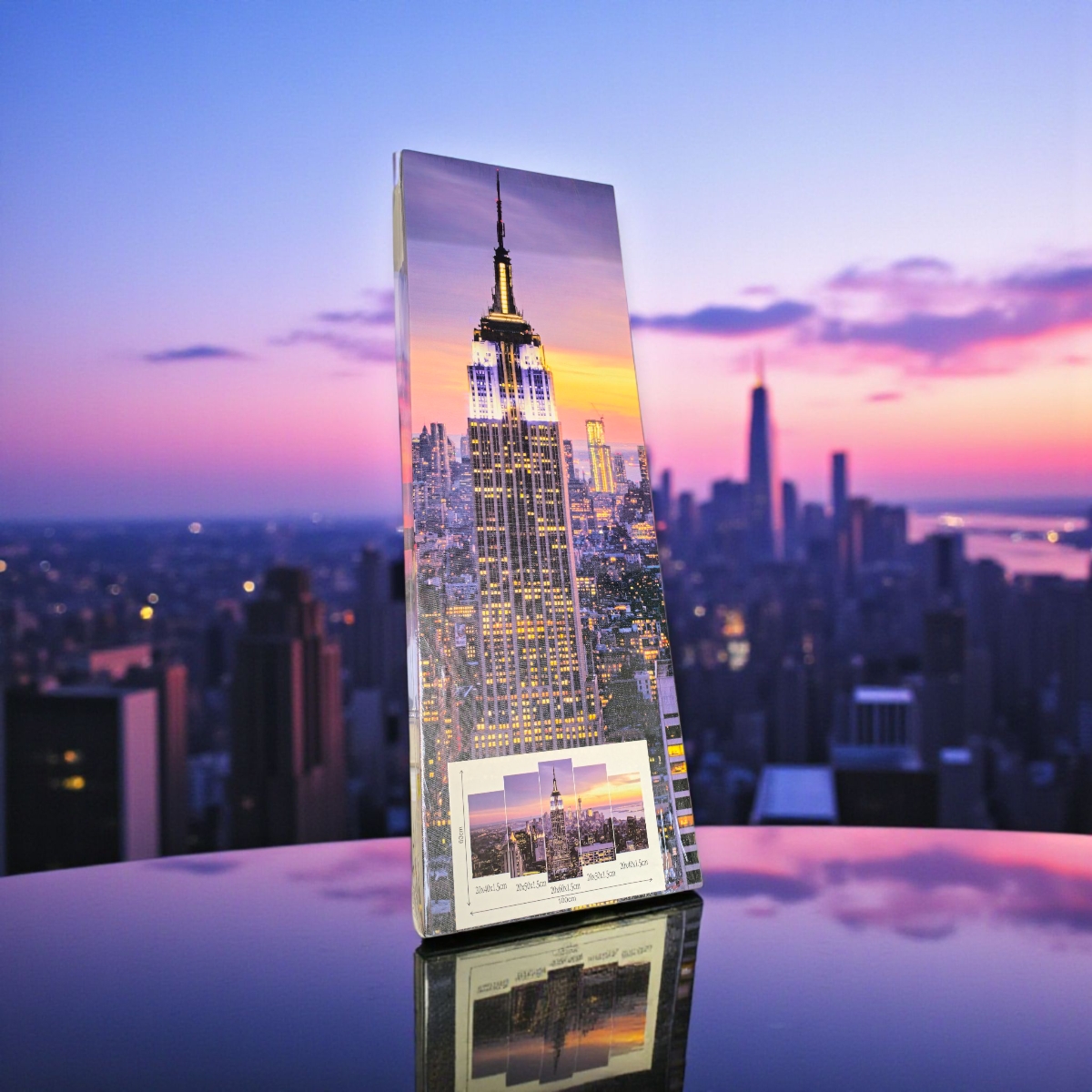 Modern stílusú, 5 darabból álló dekoratív vászonkép, amely az ikonikus Empire State Buildinget ábrázolja. A fekete-fehér, városi hangulatú kompozíció elegáns és letisztult megjelenést biztosít bármely helyiségben – legyen szó nappaliról, hálószobáról vagy irodáról.