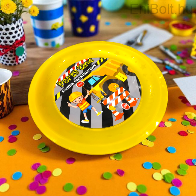 Kezdőlap » Iskolai és parti kellékek » Parti kellékek » Építkezés mintás műanyag tányér 21 cm – bpa mentes, többször használatos