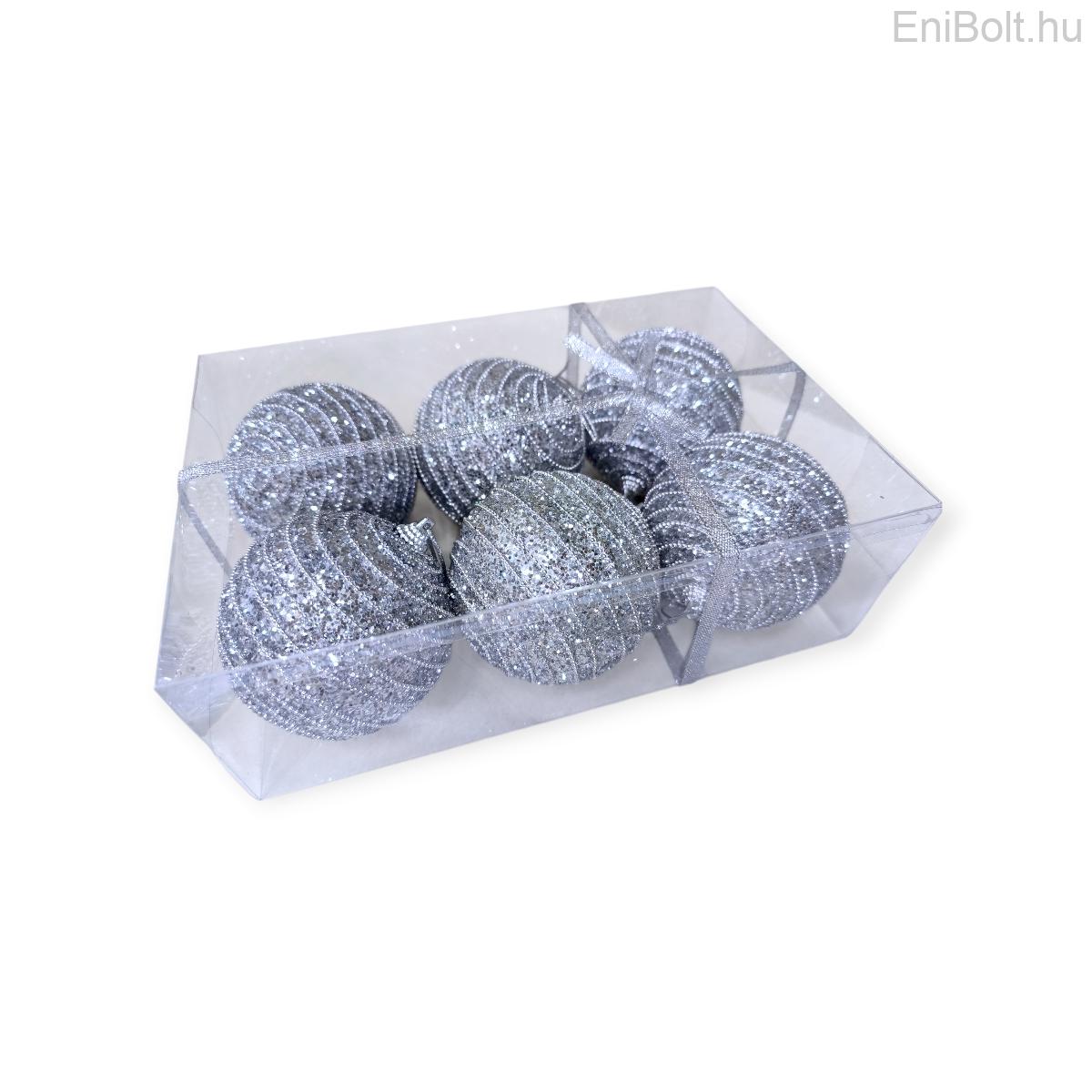 Ezüst csillogó csipkés karácsonyfadísz gömb szett – 6 db (8 cm)