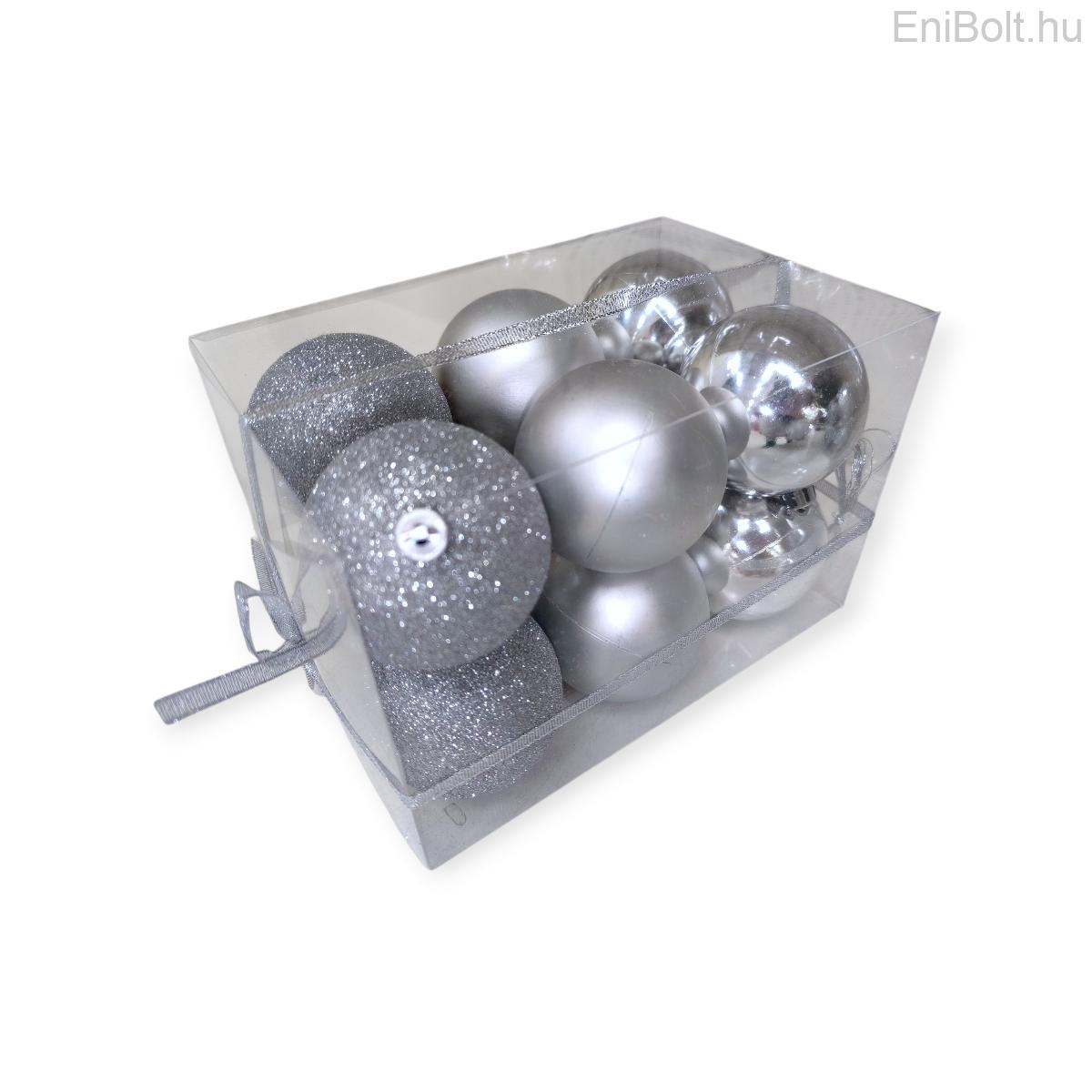 Ezüst karácsonyfadísz gömb szett – matt, fényes és csillámos – 12 db (7 cm)