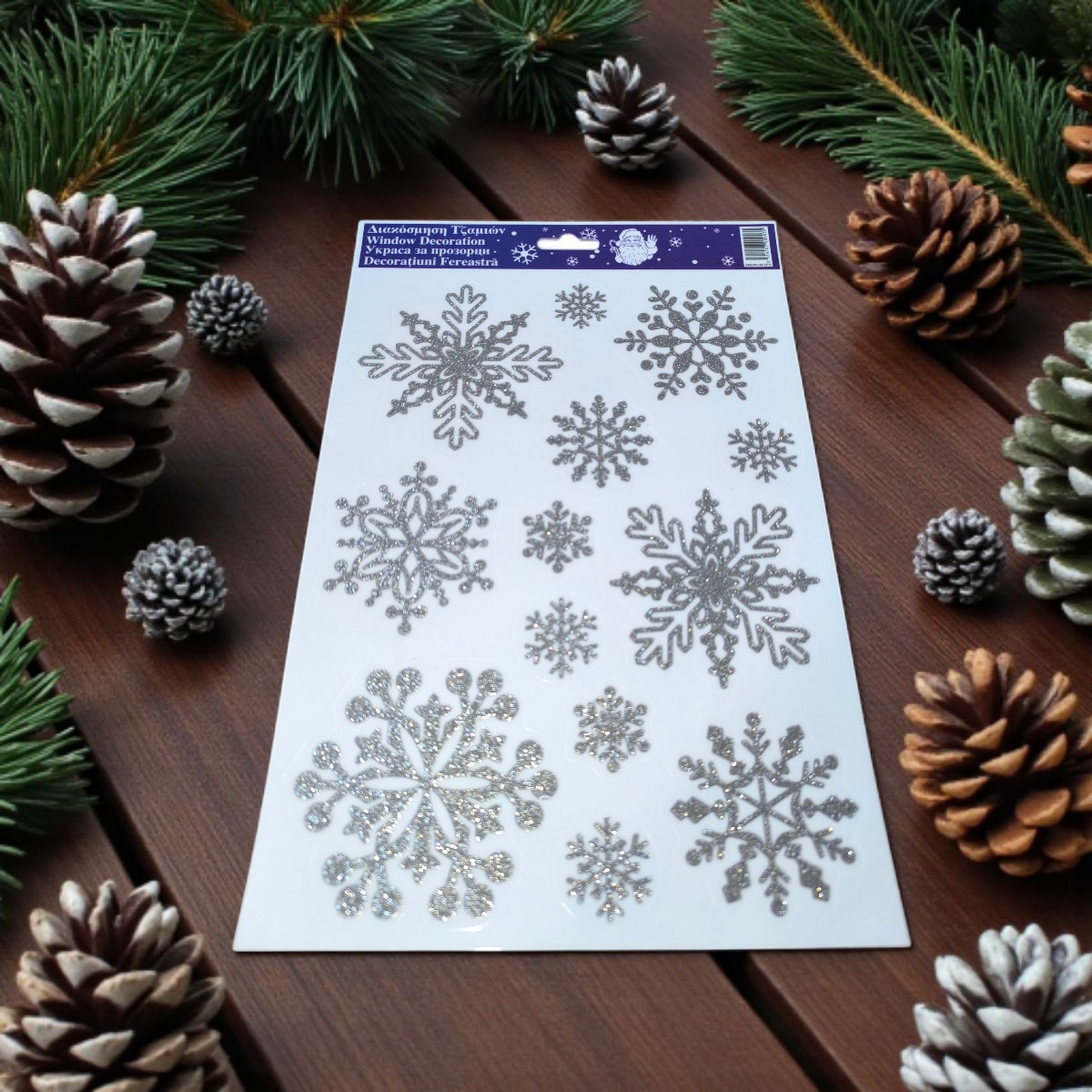 Kezdőlap » Karácsonyi dekorációk » Karácsonyi matricák » Ezüstpelyhek karácsonyi ablakmatrica csillámos 20×30 cm