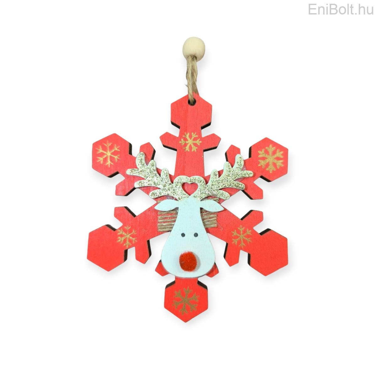 Kezdőlap » Karácsonyi dekorációk » Fából készült díszek » Fa karácsonyfadísz piros pehely fehér szarvassal (10 cm)