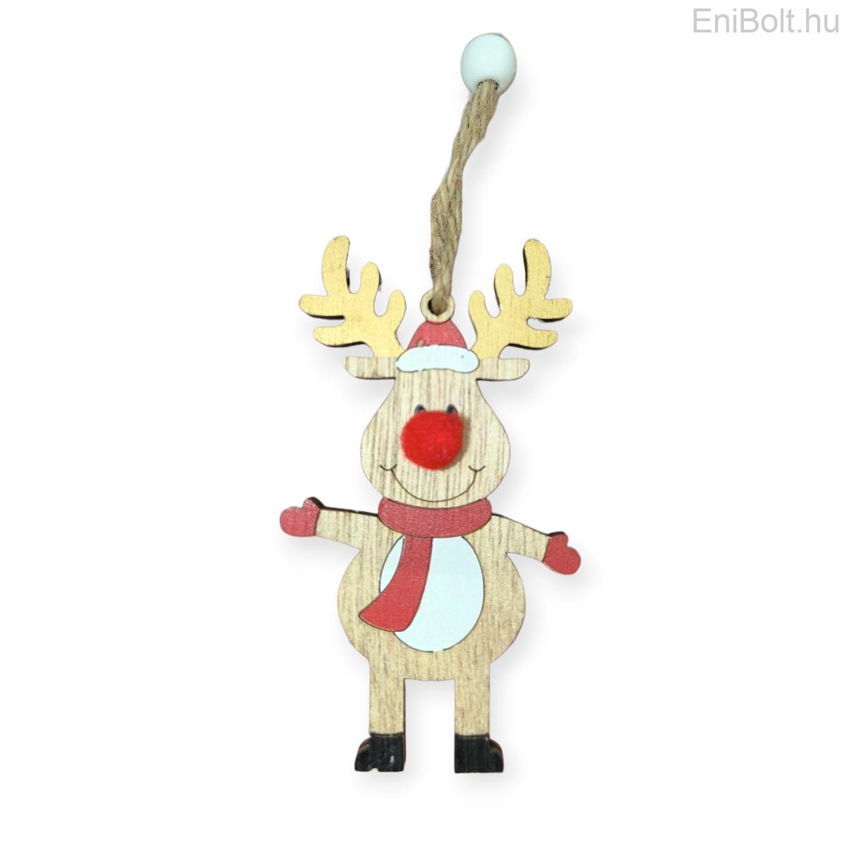 Kezdőlap » Karácsonyi dekorációk » Fából készült díszek » Fa karácsonyfadísz szarvas piros pompon orral (9 cm)