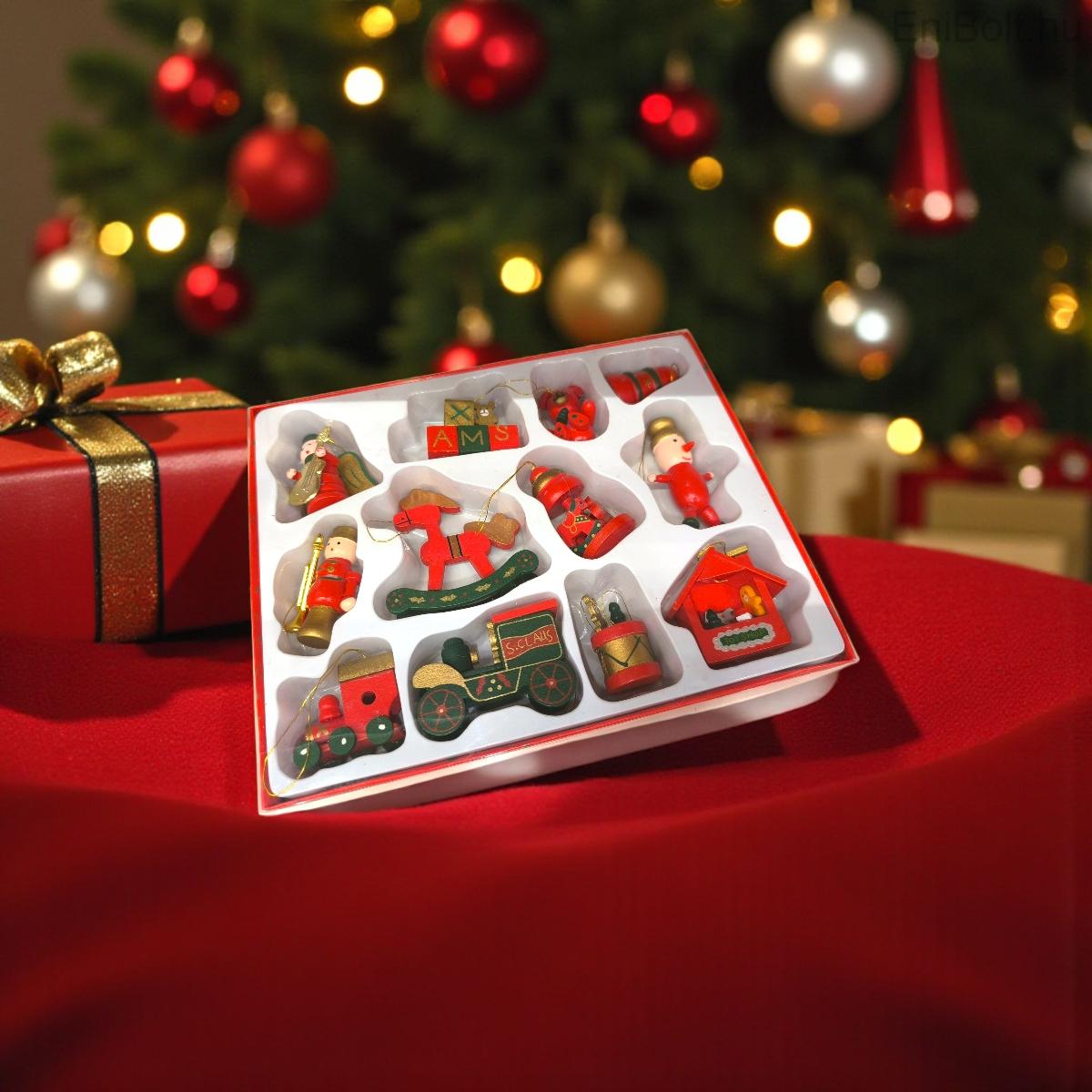 Hangulatos fa karácsonyfadíszek 12 darabos szettben, különféle festett figurákkal. Tökéletes választás a karácsonyfa, ajtódíszek, koszorúk vagy ajándékcsomagolások díszítéséhez. Vidám és meghitt ünnepi megjelenést kölcsönöz bármely dekorációnak.