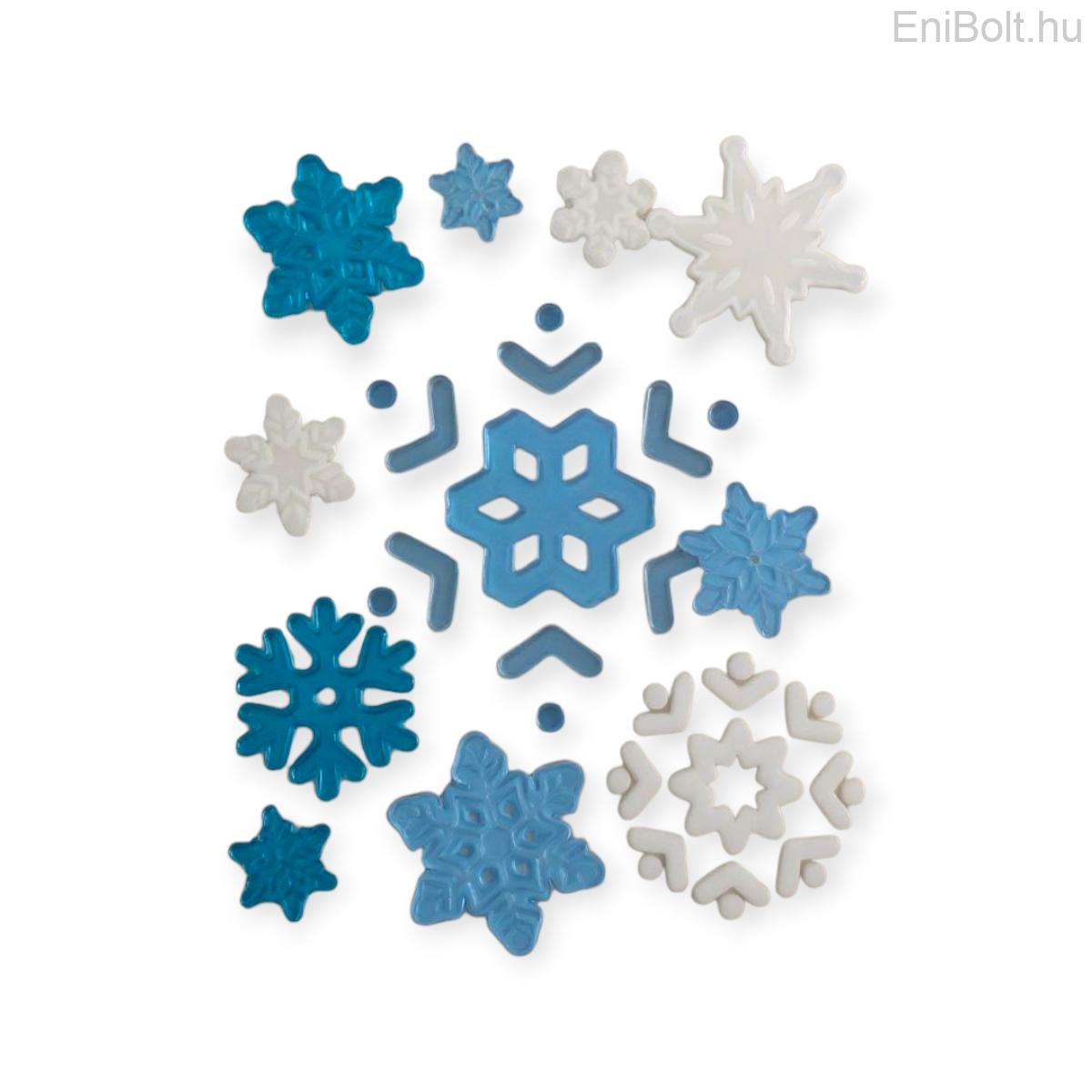 Fehér hópelyhek gél matricák kristálykék 5x5cm