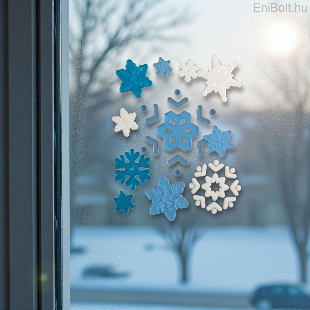 Díszítsd ablakait vagy tükröket fehér hópelyhek gél matricákkal kristálykék árnyalatban, tökéletes karácsonyi partira vagy ünnepi hangulathoz. Könnyen felhelyezhető és eltávolítható, gyönyörű csillogást ad a dekorációnak.