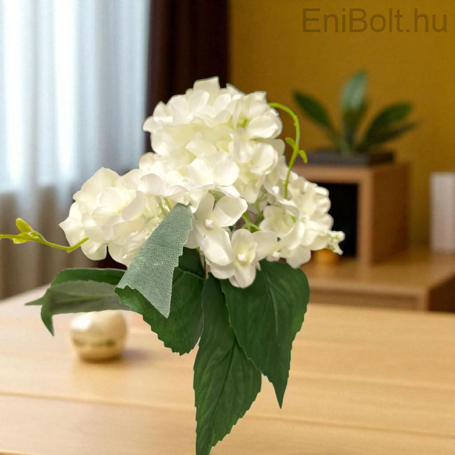 Dobd fel otthonod hangulatát ezzel az elegáns, fehér hortenzia művirágcsokorral, amely stílusos és időtálló megoldást kínál bármely helyiség díszítésére.