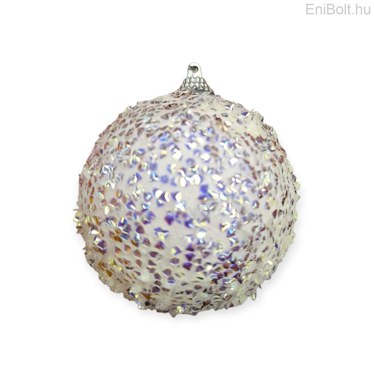 Fehér irizáló díszszálas hab gömb karácsonyfadísz 8cm
