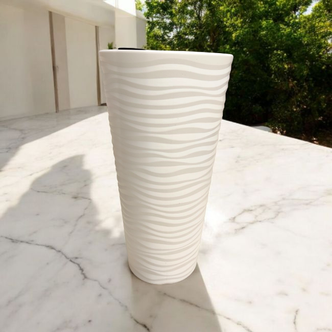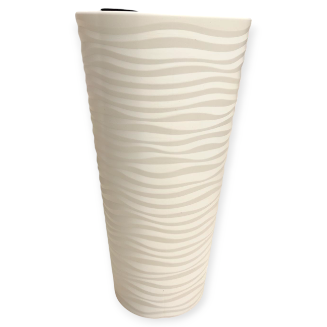 Fehér műanyag kúpos virágcserép dombornyomott csíkokkal – 30x57 cm, 51 L