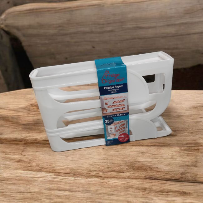 Ez a praktikus, fehér műanyag tojástartó hűtőszekrénybe készült, 28 tojás tárolására alkalmas. A szervező 4 szintből áll, enyhe lejtéssel, amely lehetővé teszi, hogy amikor kiveszel egy tojást, a többi automatikusan egy pozícióval előrébb gördüljön. Így mindig a legrégebbi tojás kerül elsőként felhasználásra, megkönnyítve a frissesség megőrzését.