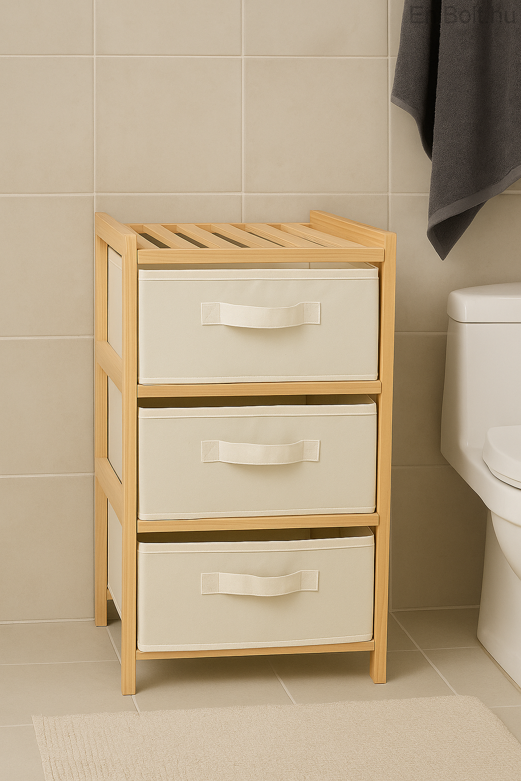 • Sokoldalú felhasználás – törölközők, piperecikkek, fürdőszobai kiegészítők rendszerezésére