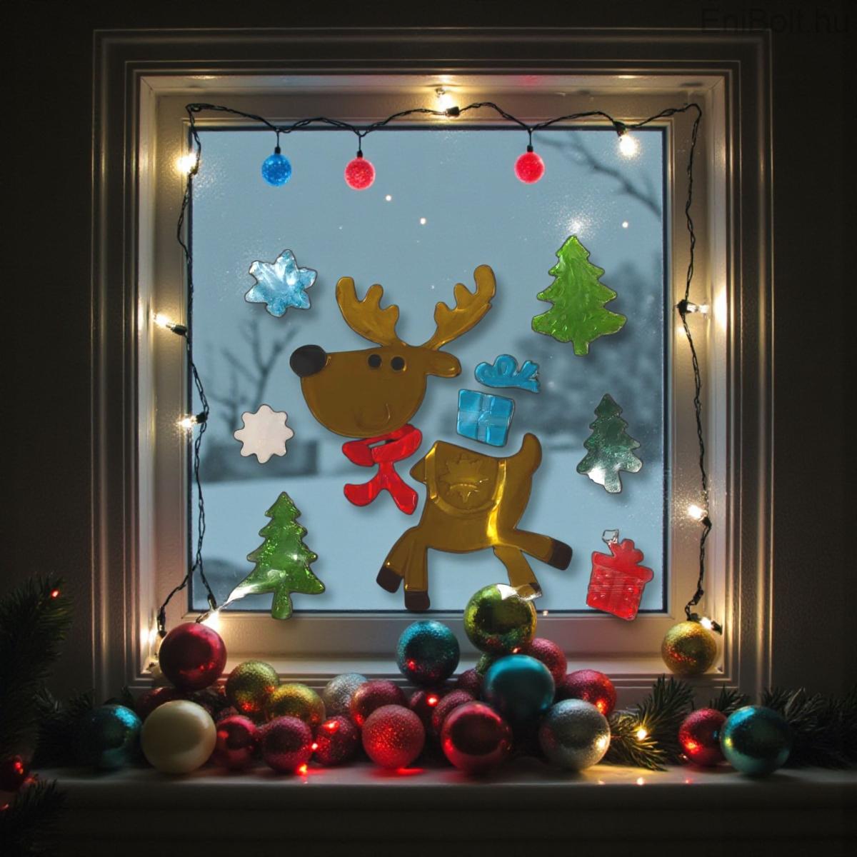 Díszítsd ablakait vagy tükröket ezekkel a gél matricákkal, melyeken rénszarvasok, hópelyhek, fenyőfák és ajándékok jelennek meg. Ideális karácsonyi hangulat megteremtéséhez otthon vagy ünnepi partin.