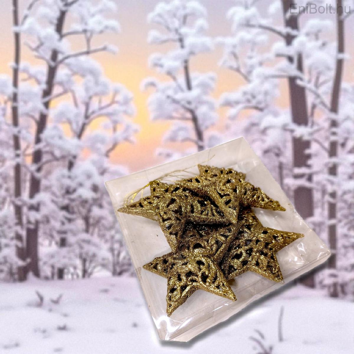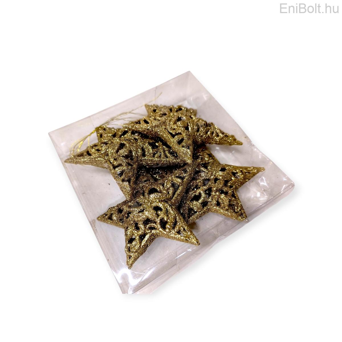 Arany csillag alakú karácsonyi díszek szettben, melyek elegáns csillogást adnak a fának. Kombináld más arany vagy fehér díszekkel a ragyogó, ünnepi megjelenésért!