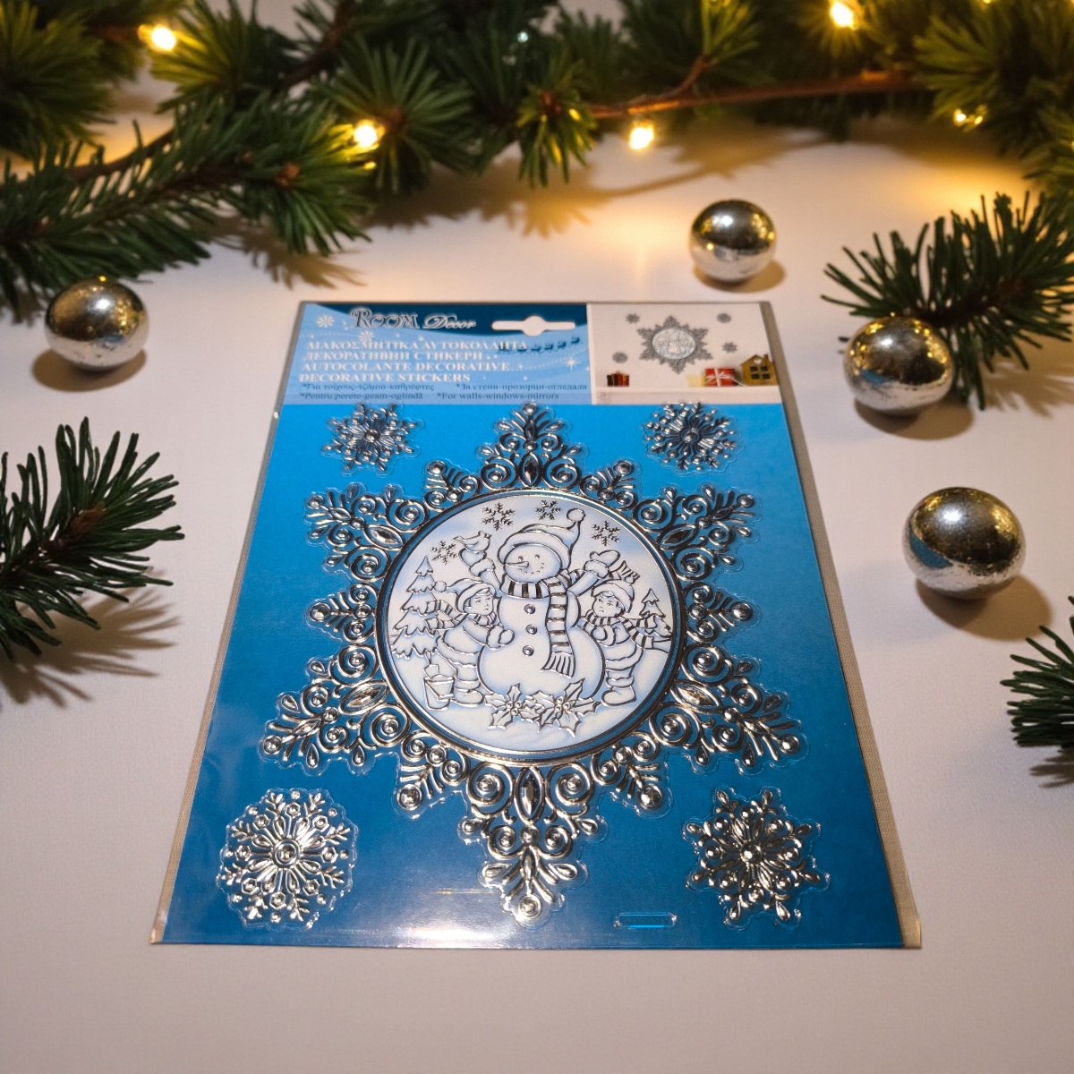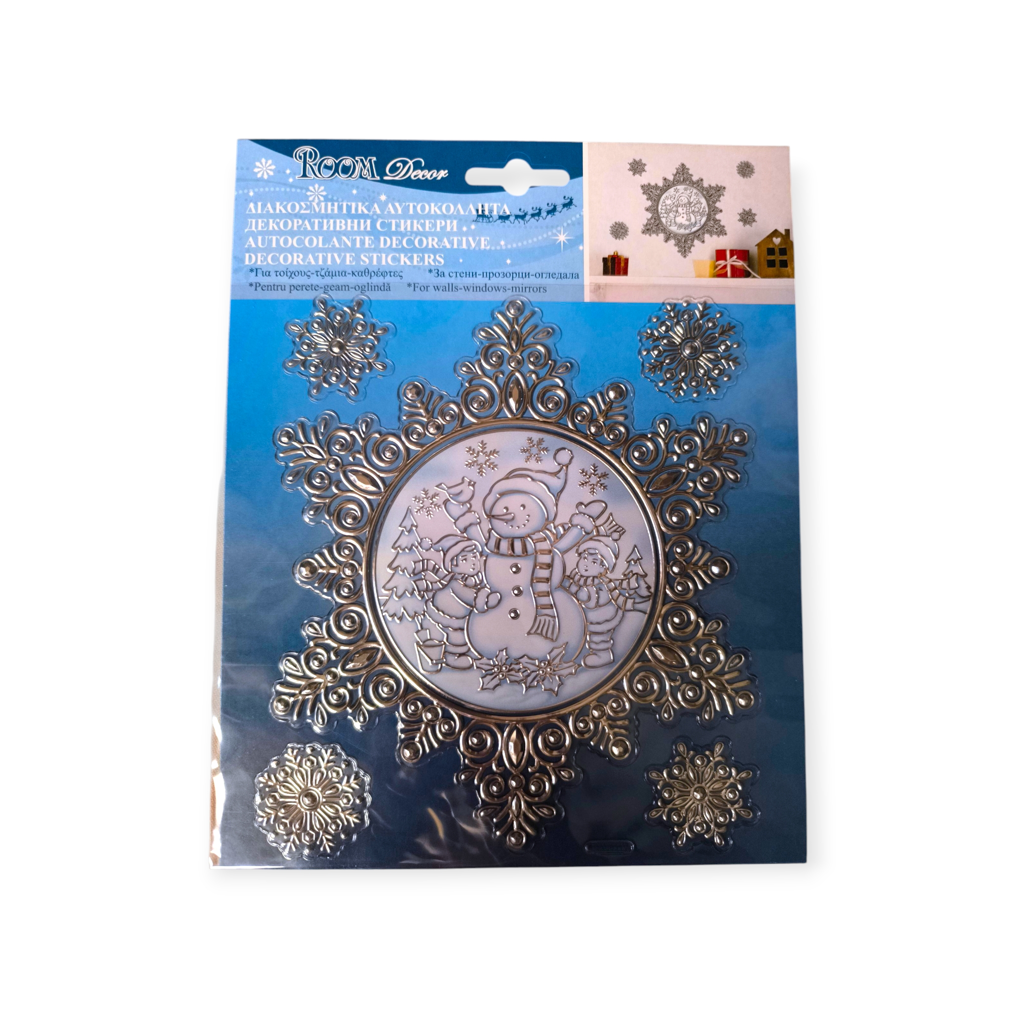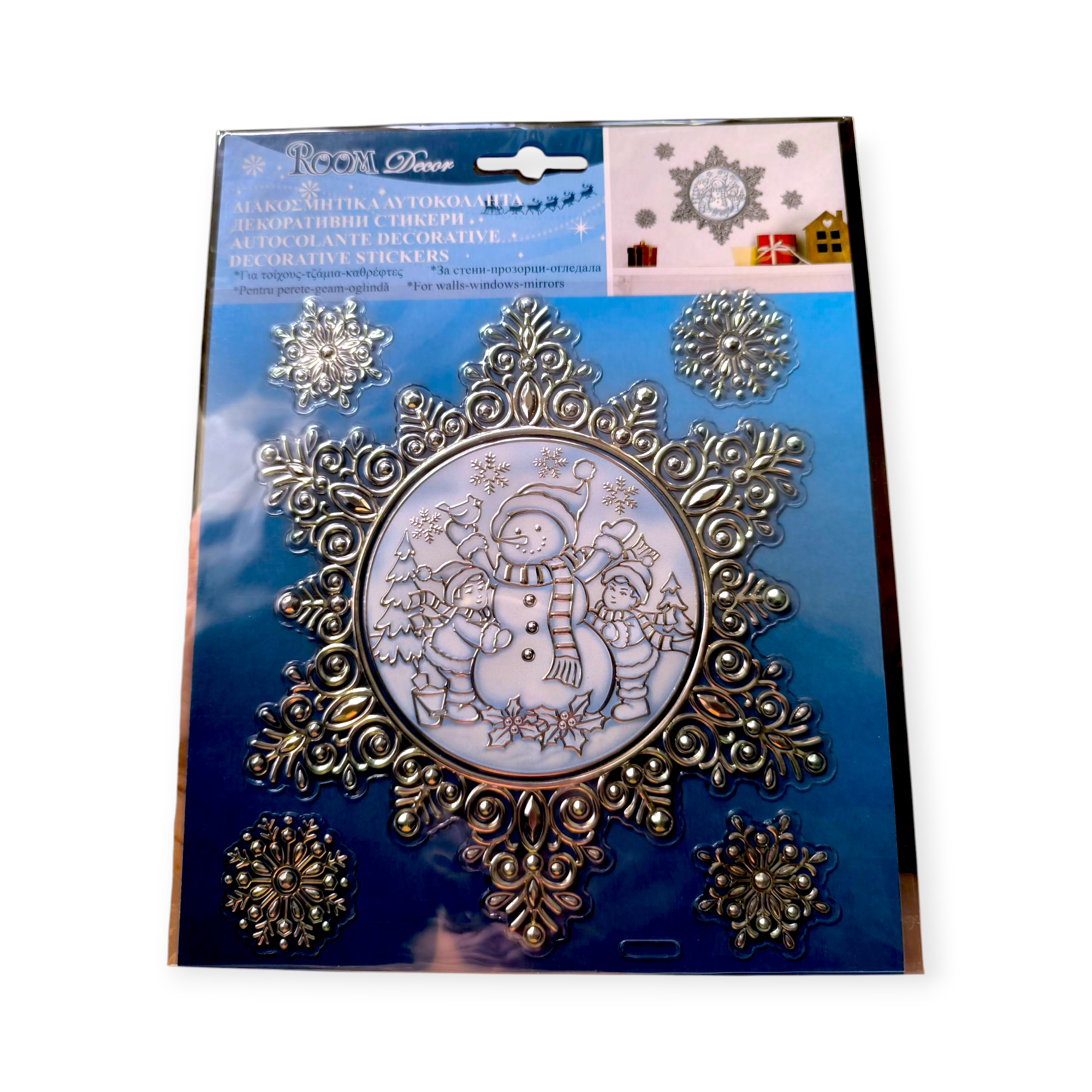 Dekoratív karácsonyi matrica gyönyörű hópehely mintával, amely varázslatos ünnepi hangulatot teremt ablakokon, falakon vagy tükrökön. Könnyen felhelyezhető, elegáns kiegészítője minden otthonnak.