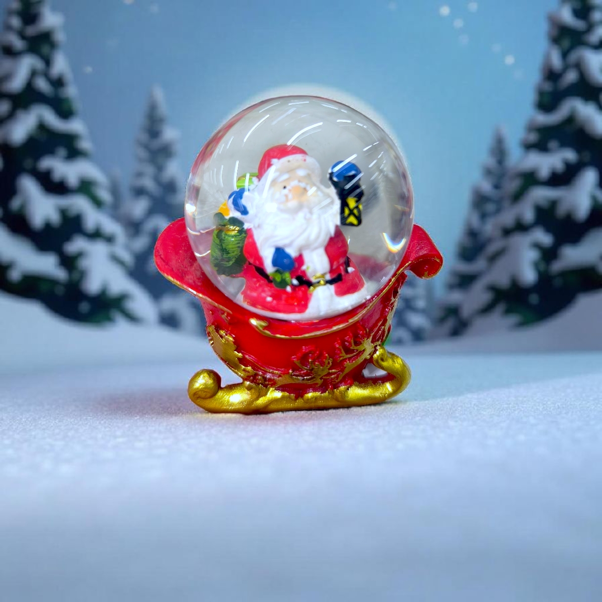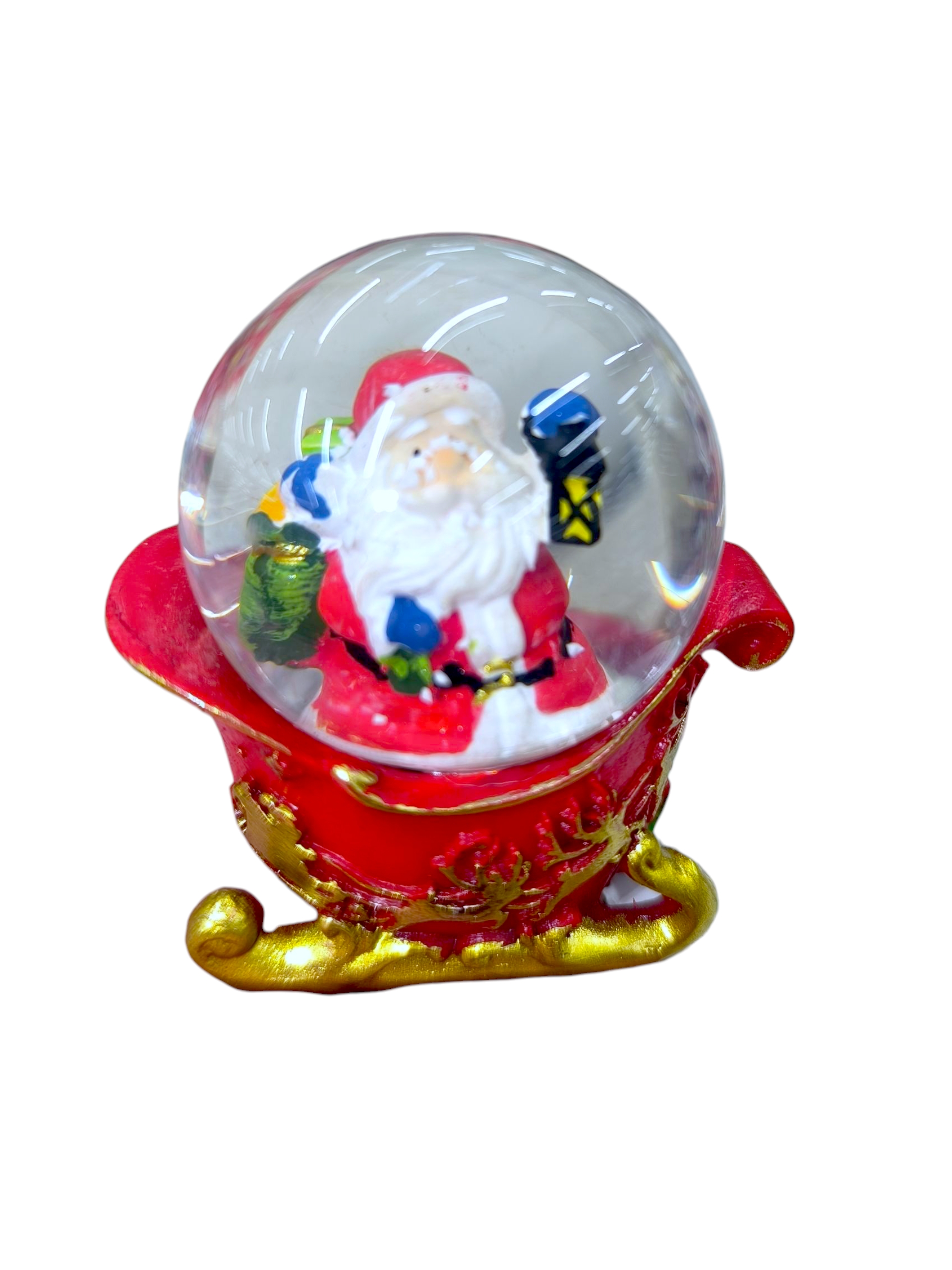 Bájos karácsonyi hógömb mikulással, piros szán alakú talpon. A gnóm és pelyhes részletek vidám, mesés hangulatot teremtenek otthonodban. Tökéletes ajándék vagy dísz az ünnepi szezonra!
